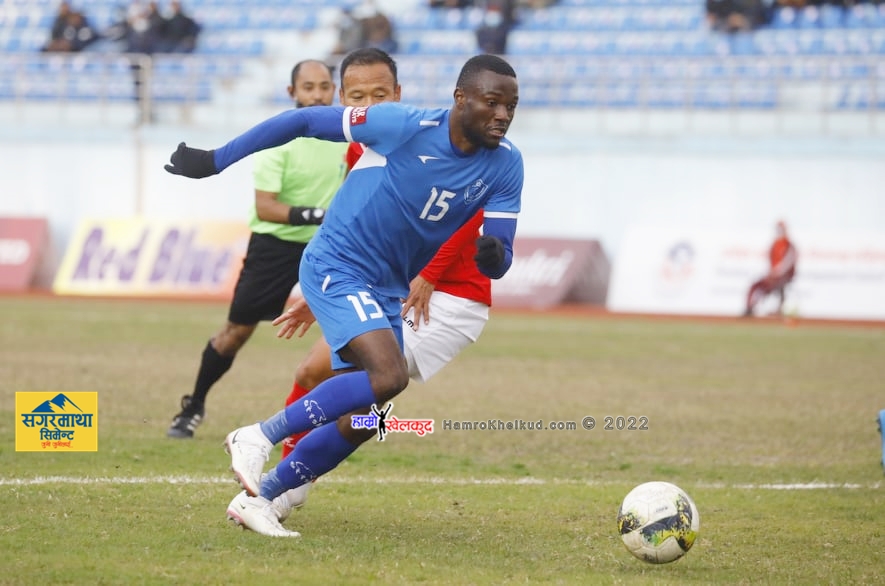 २९औं मिनेटमा सुमन अर्याल र विकास तामाङबीच समन्वय नमिल्दा ओनगुनाले बल भेट्दै गरेको प्रहारलाई विकेशले नै उत्कृष्ट बचाउ गरे । त्यसमै निकोलस फर्नान्डेसको कर्नरमा सिमन्त थापाको हेड सदुपयोग हुन सकेन । ३१औं मिनेटमा कप्तान भत खवासको प्रहारलाई गोलरक्षक टिकेन्द्रले सहजै नियन्त्रणमा लिए ।