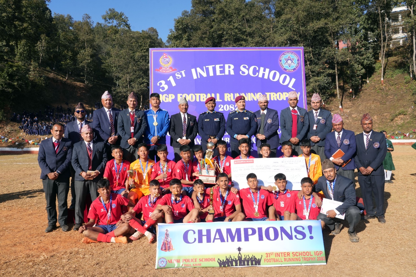 काभ्रे (हाम्रो खेलकुद)- आयोजना काभ्रेपलाञ्चोक साँगाको नेपाल पुलिस स्कुलले ३१औं अन्तर माध्यामिक विद्यालय आइजिपी फुटबल प्रतियोगिताको रनिङ ट्रफी जितेको छ । भक्तपुरको सैनिक आवसीय महाविद्यालयलाई १-० ले हराउँदै पुलिस स्कुलले उपाधि जितेको हो। रोनी विक्रम शाहले नवौं मिनेटमा गरेको गोल खेलको निर्णायक बन्यो। रोनी फाइनल अफ दि म्याच घोषित भए। प्रतियोगितामा पिस पोइन्ट बोर्डिङ स्कुल […]