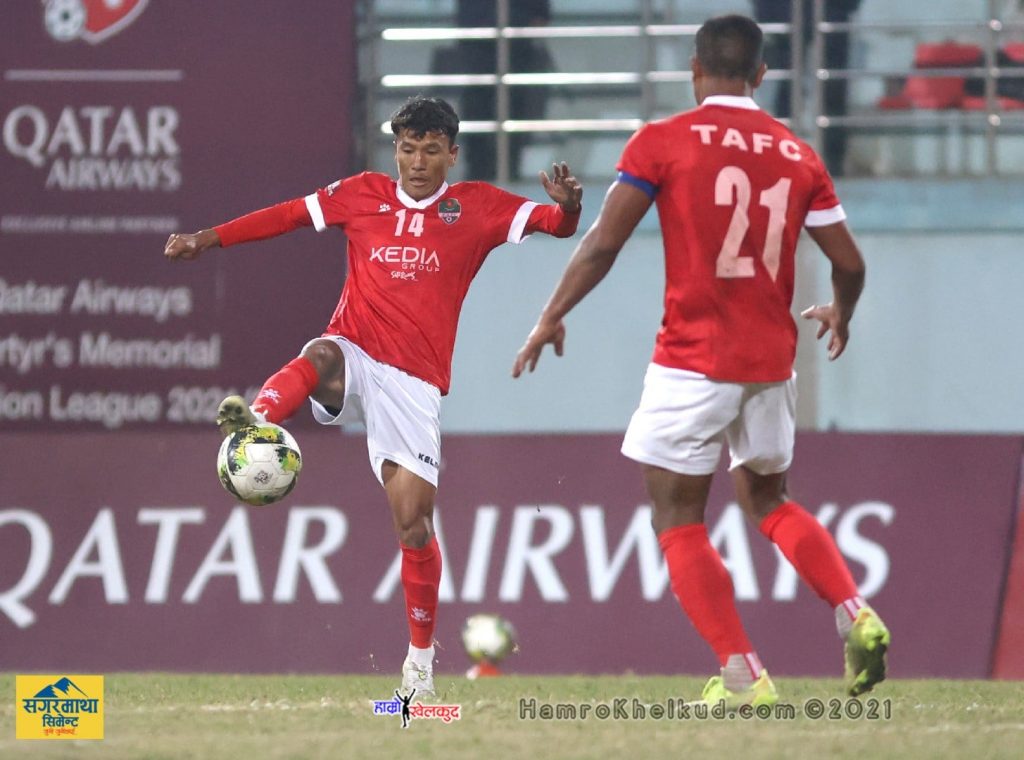 काठमाडौं (हाम्रो खेलकुद) – सुरुवाती अग्रता जोगाउन नसक्दा त्रिभुवन आर्मी फुटबल क्लबले कतार एअरवेज सहिद स्मारक ‘ए’ डिभिजन लिगमा हिमालयन शेर्पा क्लबसँग बराबरीमा रोकिएको छ । १० खेलाडीमा समेटिएको आर्मीले शेर्पासँग १–१ गोलको बराबरी खेलेको हो ।