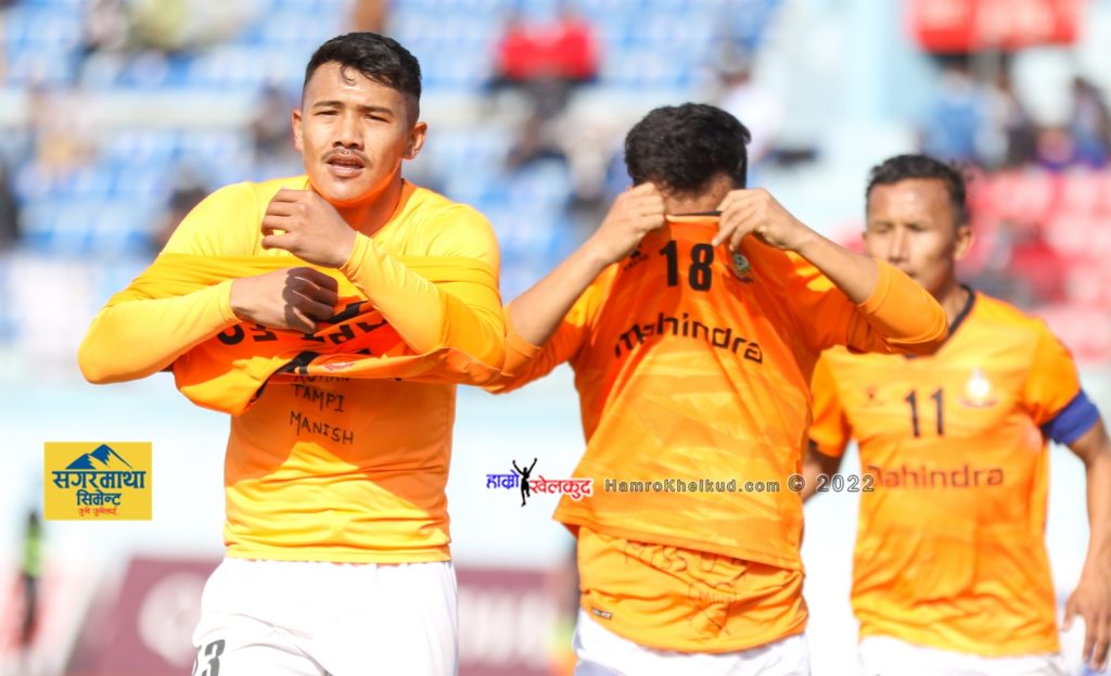 एपिएफले मनाङमाथि ३–१ को सानदार पूनरागमन जित निकालेको हो । एपिएफको पूनरागमन जितमा आशिष लामा, मणि कुमार लामा र कप्तान नविन लामाले गोल गरे । मनाङका कप्तान अन्जन विष्टले एक गोल गरे ।