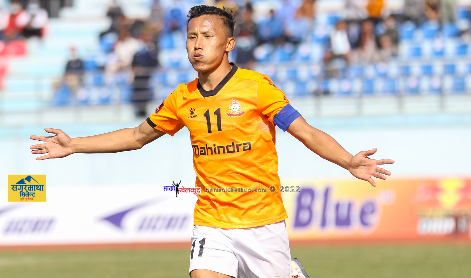 काठमाडौं (हाम्रो खेलकुद) – एक गोलले पछि परेको स्थिति उल्ट्याउँदै र विभागीय नेपाल एपिएफ फुटबल क्लबले कतार एअरवेज सहिद स्मारक ‘ए’ डिभिजन लिगमा मनाङ- मर्स्याङ्दी क्लबमाथि सानदार पूनरागमन जित निकालेको छ ।