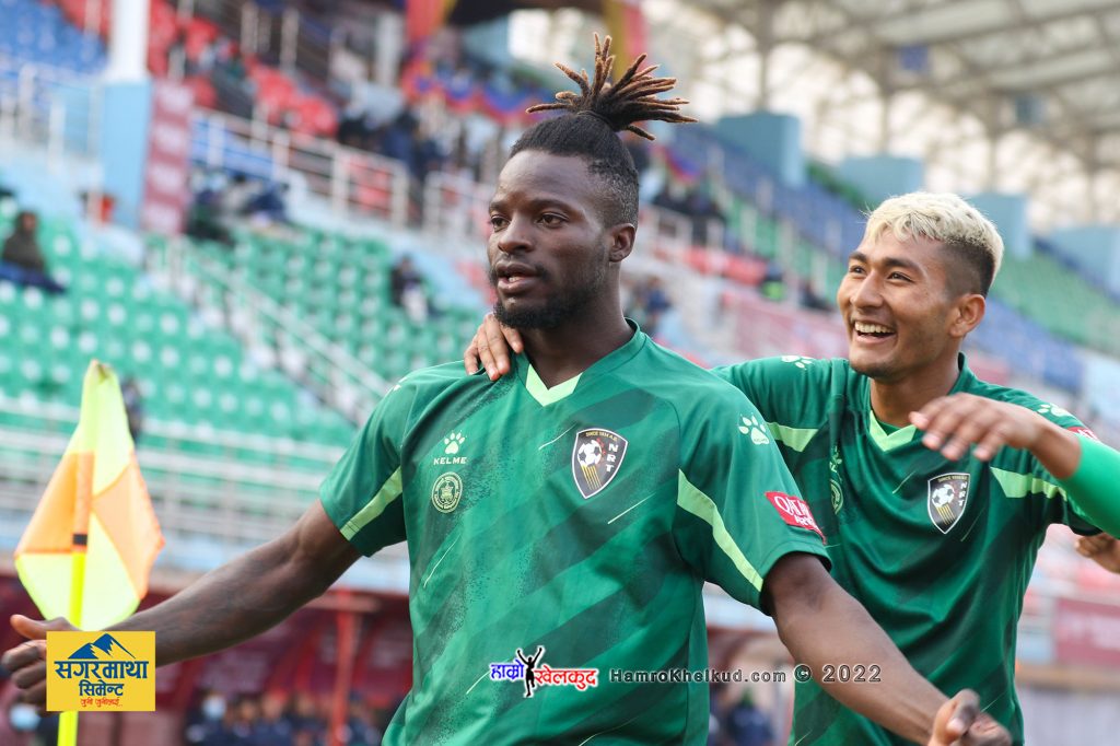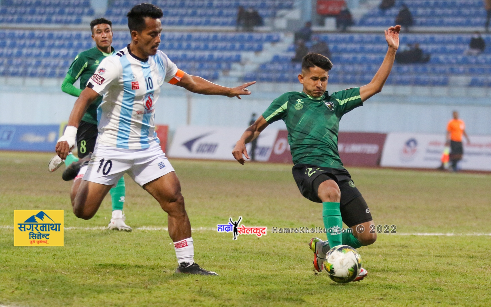 त्रिपुरेश्वरस्थित दशरथ रंगशालामा आइतबार भएको खेलको १५औं मिनेटमा सनम सोडेम्वा लिम्बुको प्रहारलाई गोलरक्षक अशोक बरालले मुस्किलले नियन्त्रणमा लिए ।