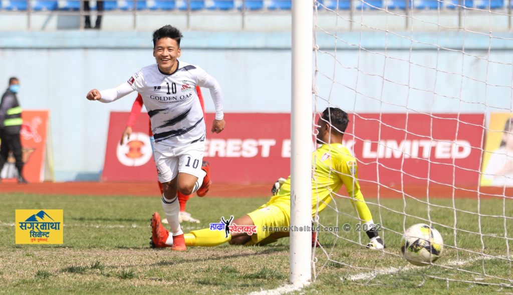 त्रिपुरेश्वरस्थित दशरथ रंगशालामा सोमबार भएको खेलको तेस्रो मिनेटमा कप्तान मान बहादुर तामाङको क्रसमा सुशिल राईको हेडर पासमा अजायी मार्टिन्सको प्रयासलाई गोलरक्षक गुरुप्रित सिंहले दोस्रो प्रयासमा नियन्त्रणमा लिए ।