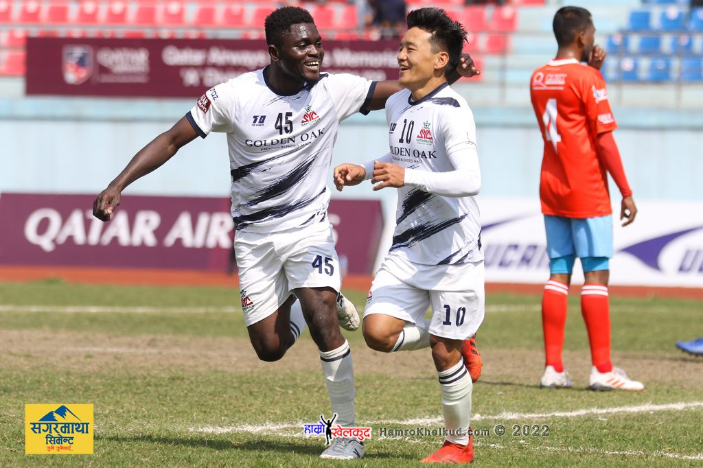 १६औं मिनेटमा बर्टान्ड इवोडेले गोल गर्दै खेललाई १–१ गोलको बराबरीमा ल्याए । दोर्जे तामाङको फ्रिकिकमा रुडी जोनाथनको प्रहारलाई क्लियर गर्न नसकेको बललाई बर्टान्डले सहजै फिनिस गरेका थिए । १८औं मिनेटमा दीपक राज सिंह ठकुरीले गोल गर्दै सातदोबाटोलाई पुनः २–१ को अग्रता दिलाए ।