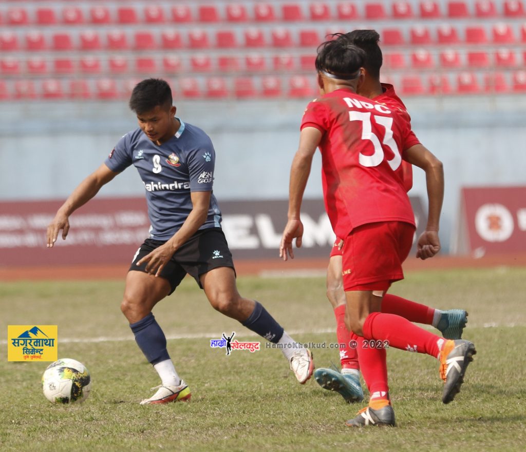 त्रिपुरेश्वरस्थित दशरथ रंगशालामा मंगलबार भएको खेलको २३ सेकेन्डमा सुमन लामाको गोलमा पुलिसले सुरुवाती अग्रता लिन सफल भयो ।कपिल ढकालको लामो पासमा गोलरक्षक युया कुरियामा र एडमा डोम्वियाबीच तालमेल नमिल्दा गोलरक्षक अघि बढेको अवस्थामा एडमाको कमजोर क्लियरेन्सलाई सुमनले बक्स बाहिरबाट खाली पोस्टमा गा्ल गर्न सफल भएका थिए ।