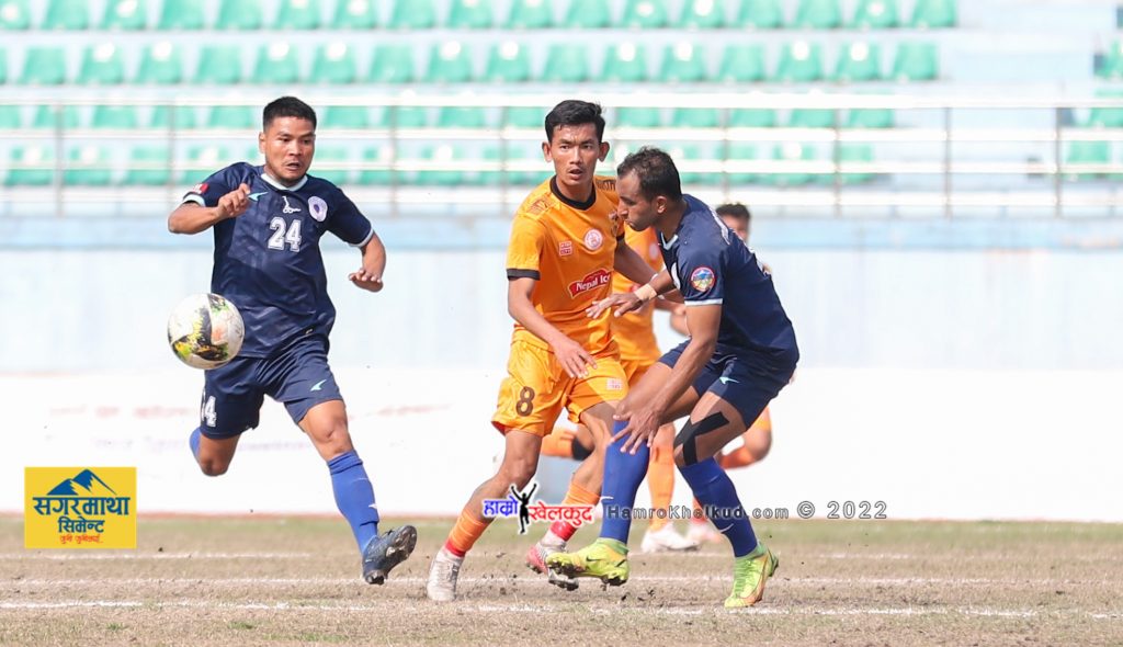 २१औं मिनेटमा मुताम्वा पिस्टोनको पासलाई निसेन सुब्बाको कमजोर क्लियरेन्सलाई विसन गुरुङको पेनाल्टी बक्सबाहिरको प्रहारलाई गोलरक्षक आशिष थाडामगरले डाइभ दिदै बचाउँदा शेर्पा अग्रता लिनबाट चुक्यो ।