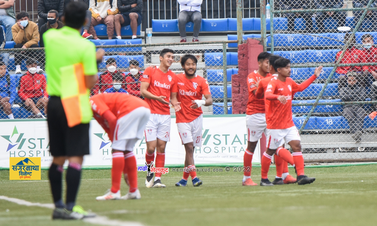 ५६औं मिनेटमा प्रशान्त तामाङले गोल गर्दै बिबिसीलाई सुरुवाती अग्रता दिलाए । गोलरक्षक एन्जल श्रेष्ठले रिलिज गरेको बलमा थ्री स्टारका कप्तान अशोक खवास र राफयल रिम झुक्किन पुग्दा प्रशान्तले बल अघि बढाउँदै वान भर्सेस वानको अवस्थामा दोस्रो बार च्याप्दै गोल गर्न सफल भएका थिए ।