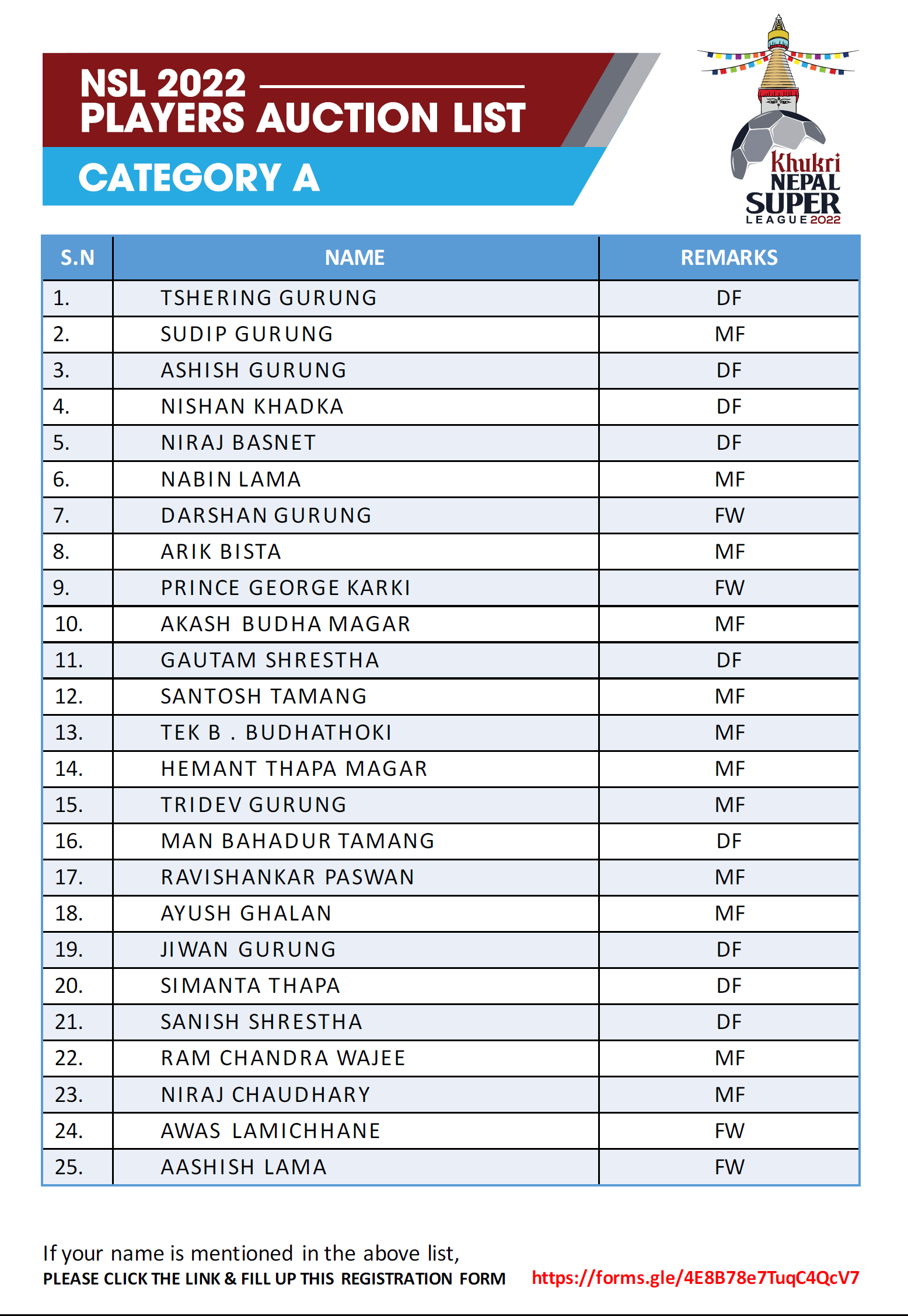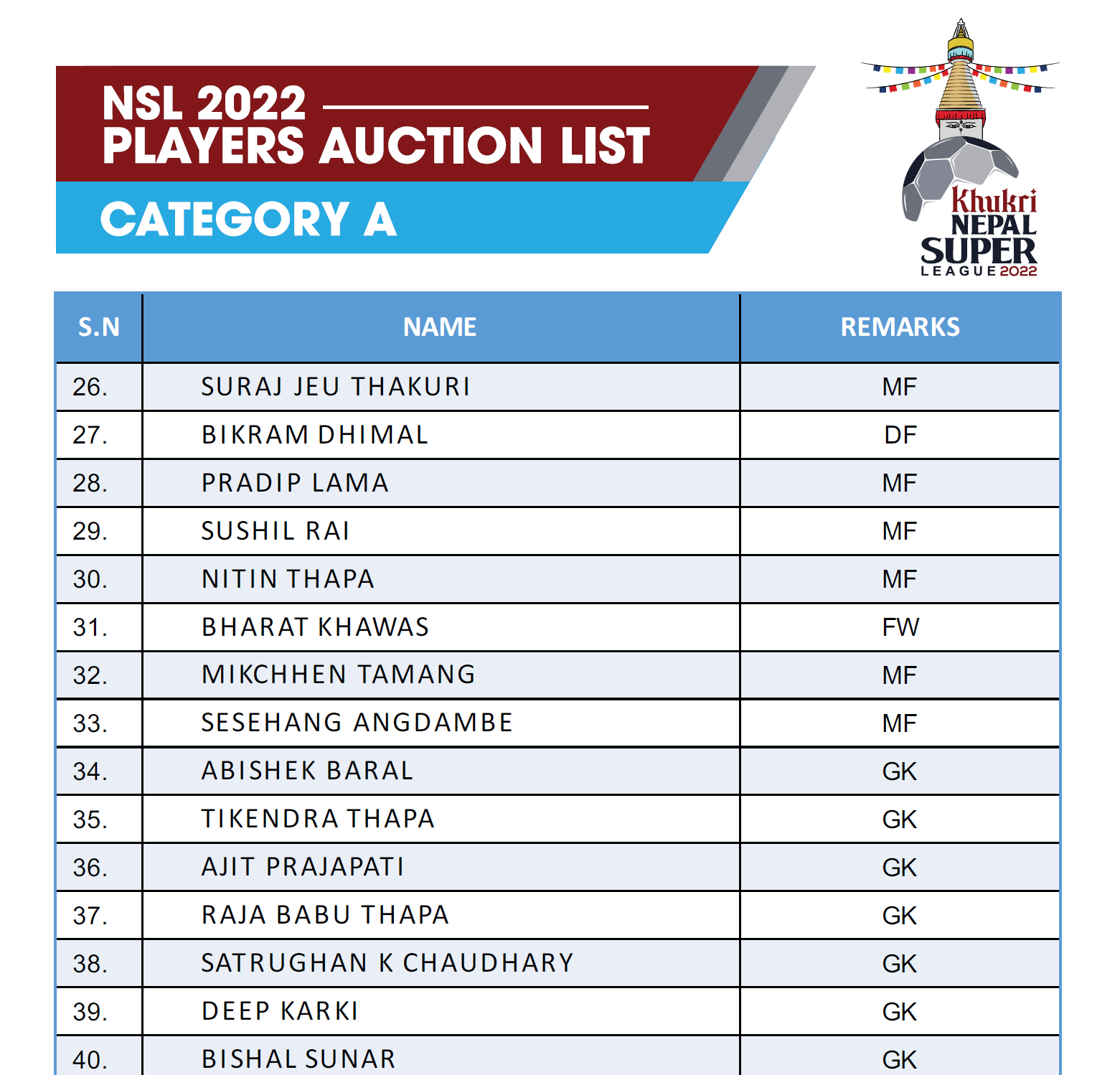 हालसम्म सहभागी सबै १० टोलीले मार्की खेलाडी सार्वजनिक गरिसकेका छैनन् । नवप्रवेशी झापा फुटबल क्लबले अन्जन विष्टलाई मार्की खेलाडी चुन्दा प्रशिक्षकबारे जानकारी दिएको छैन । विहीबार मात्र काठमाडौं रेजर्स र विराटनगर सिटी एफसीले मार्की खेलाडीसँगै मुख्य प्रशिक्षक घोषणा गरेका थिए । काठमाडौं रेजर्सले विकेश कुथुलाई र विराटनगरले रञ्जित धिमाललाई मार्की खेलाडीका रुपमा निरन्तरता दिएको घोषणा गरेको थियो ।