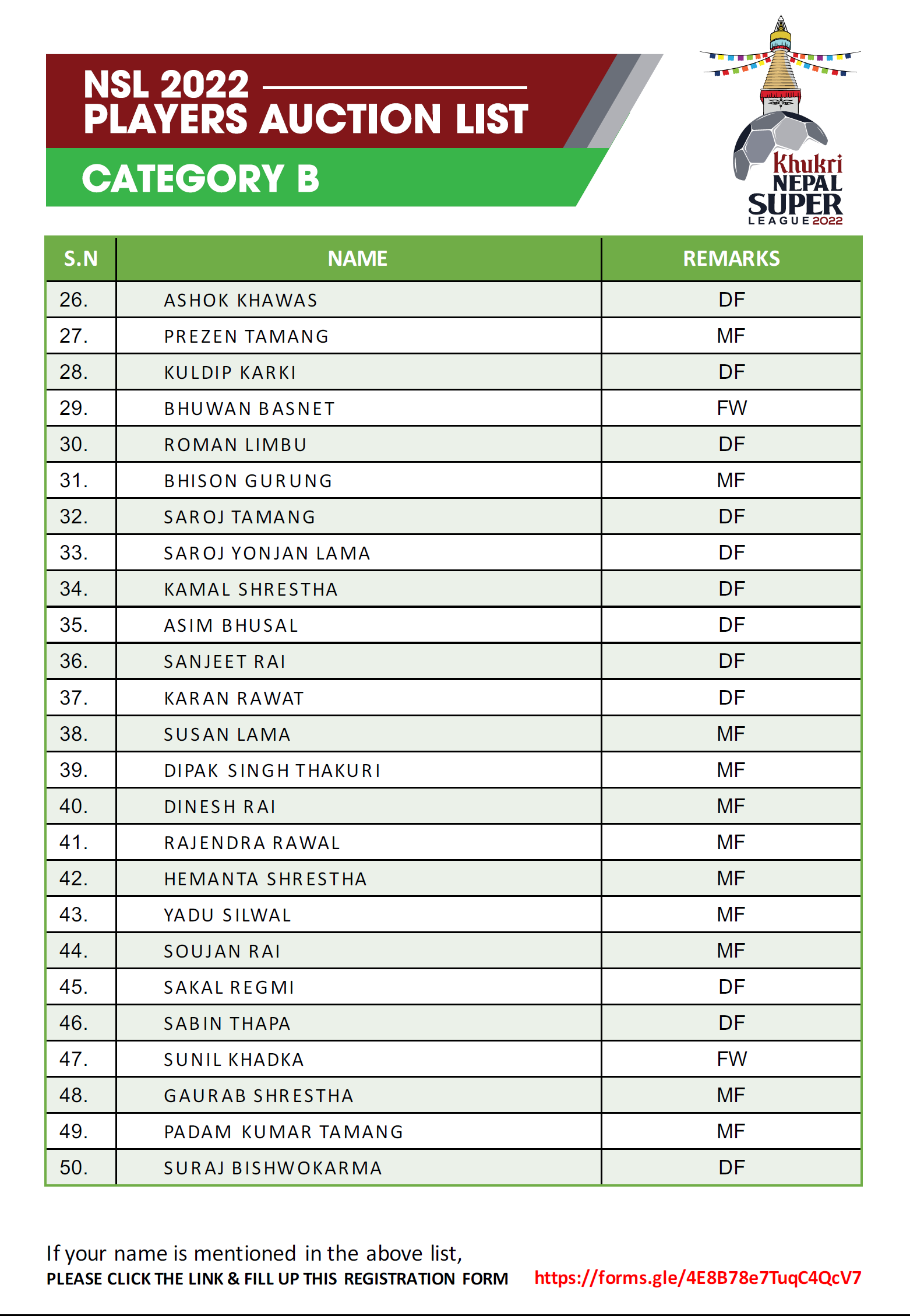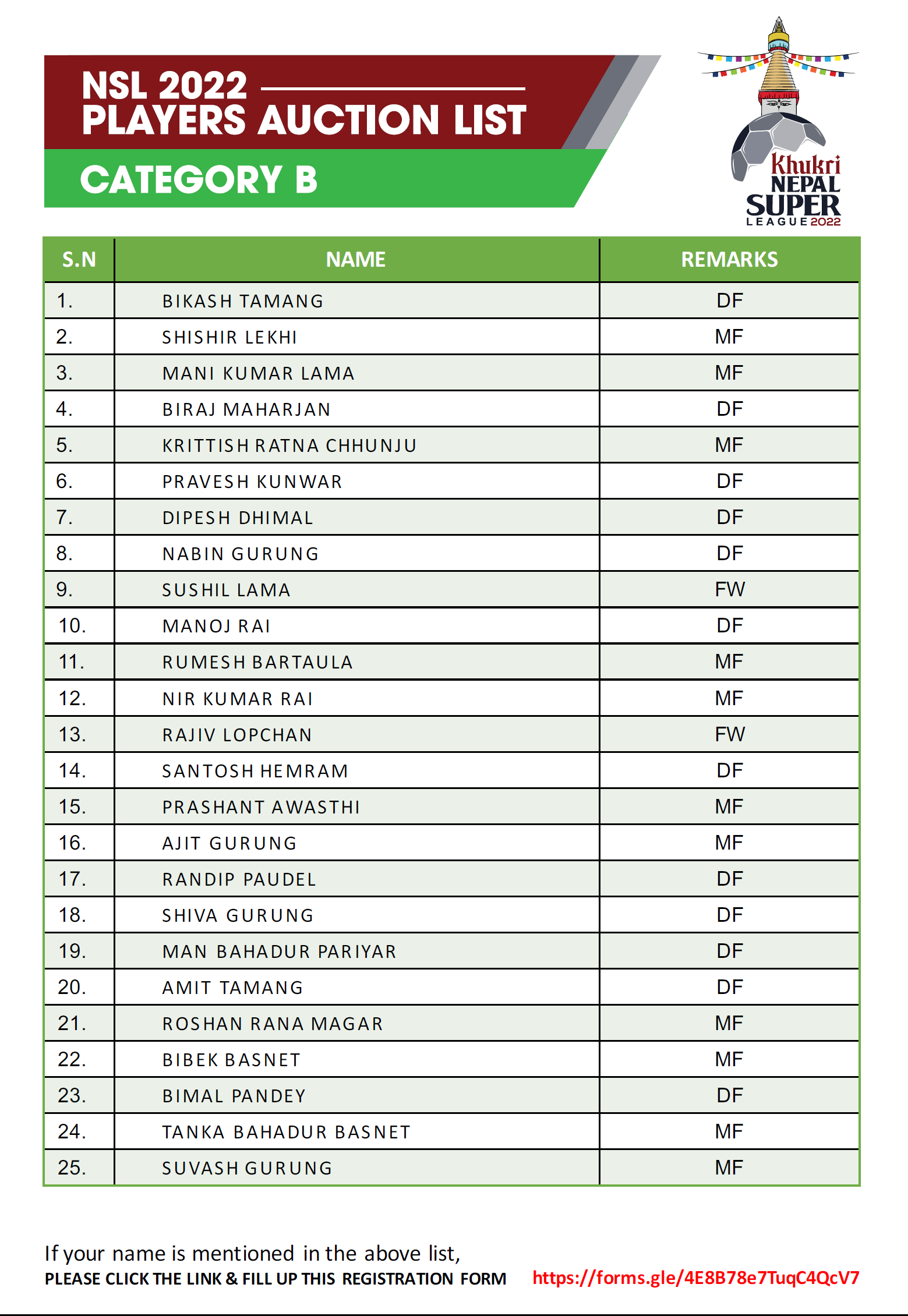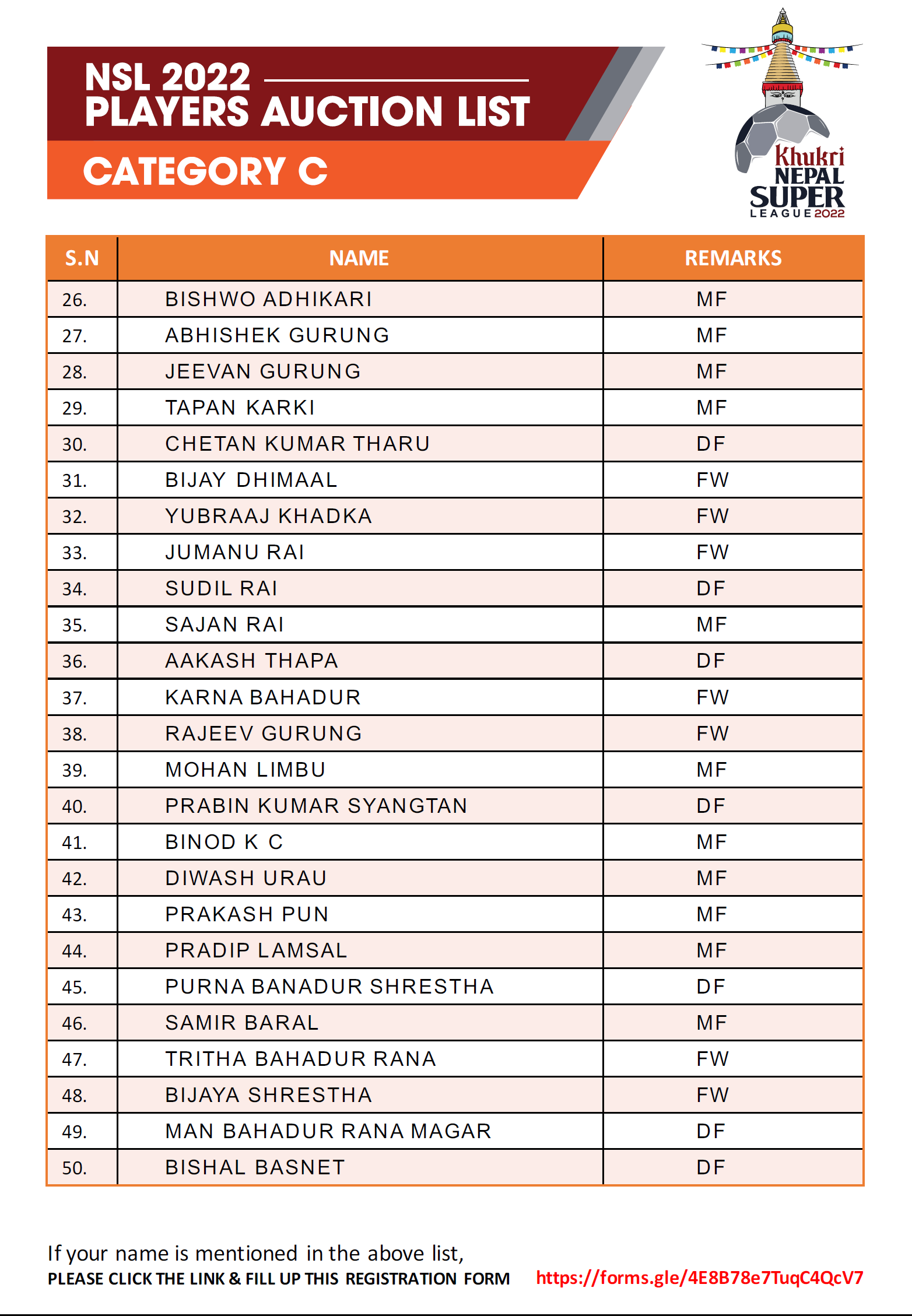 त्यस्तै बी श्रेणीका खेलाडीको सुरुवाती मुल्य १ लाख र अधिकतम मूल्य १ लाख ५० हजार रहेको छ । सी श्रेणीका खेलाडीले ५० हजार देखि १ लाखसम्म पाउनेछन् । यसपटक ट्यालेन्ट हन्टबाट २ खेलाडी अनुबन्ध गर्न पाउनेछ । अक्सनपछि अनुबन्ध गर्न पाइने यस श्रेणीमा टोलीले आफ्नै क्षेत्रको मात्र खेलाडी अनुबन्ध गर्न पाउने प्रावधान रहेको छ ।