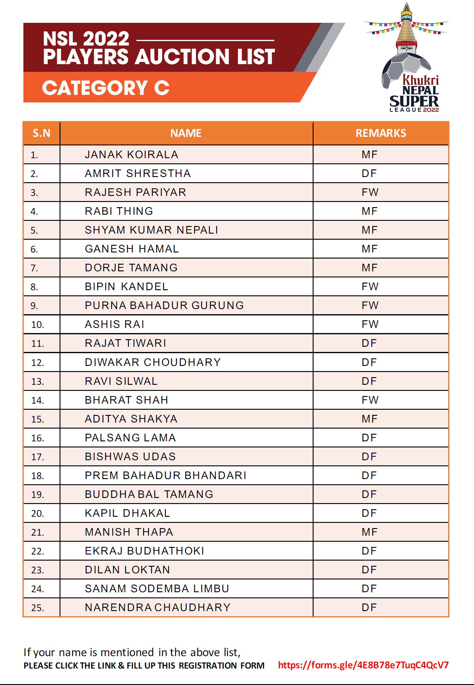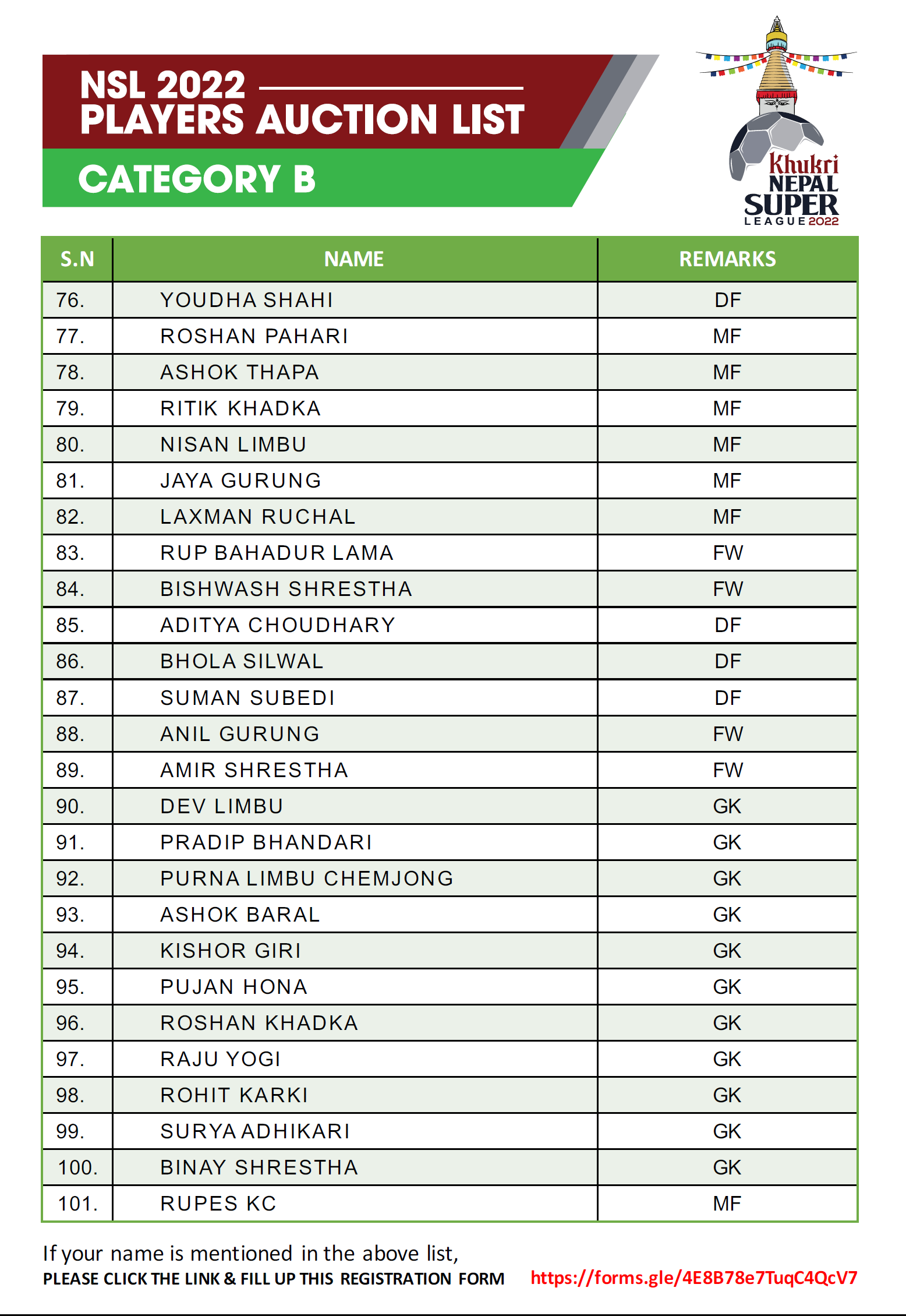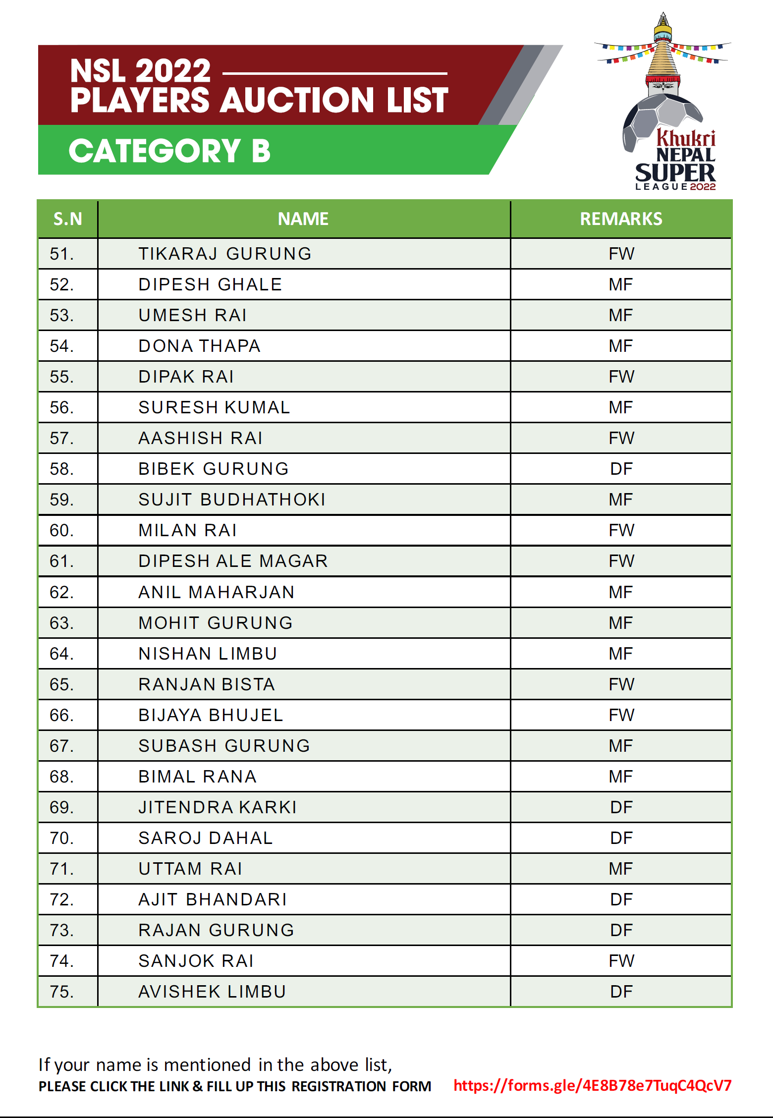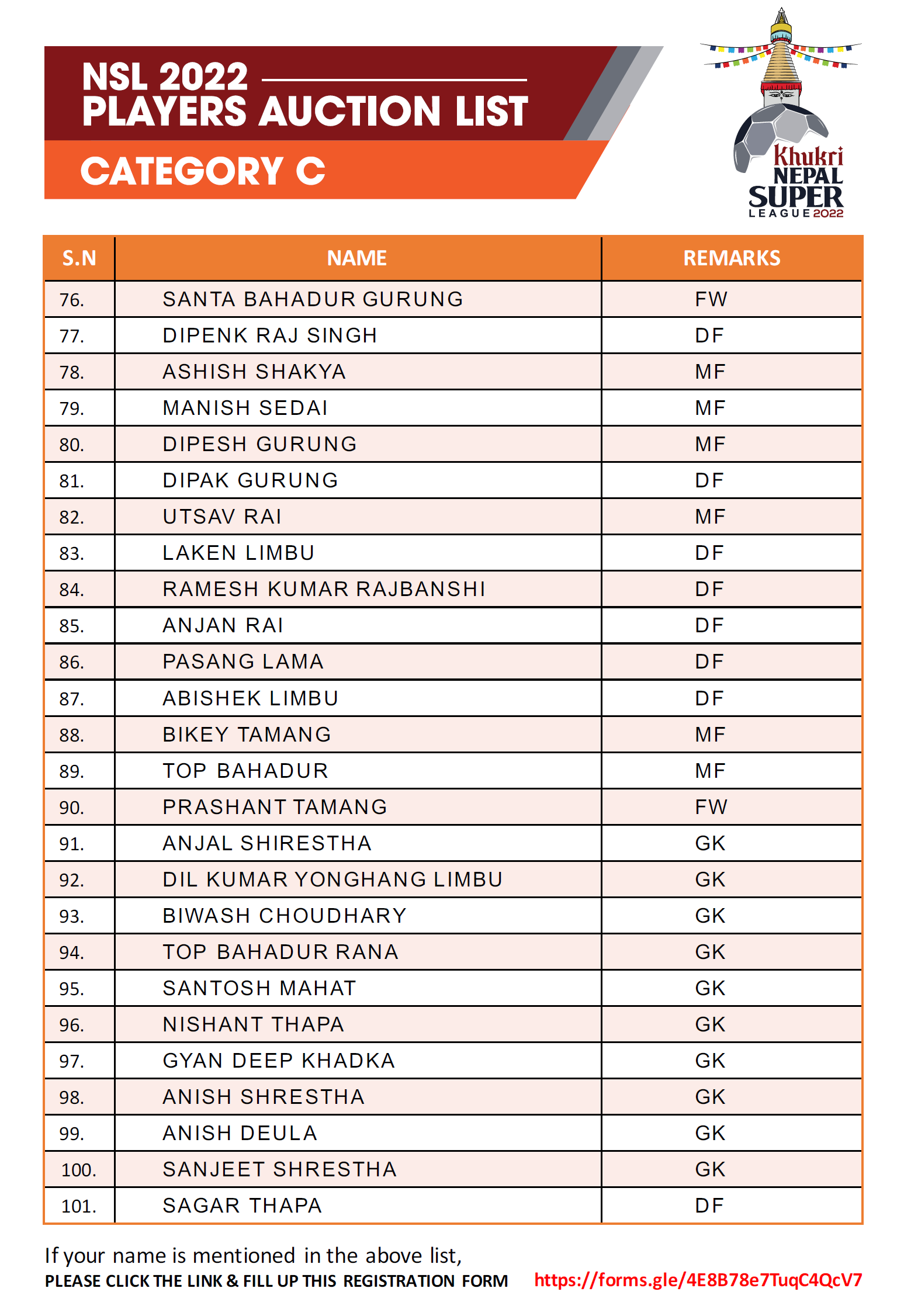 त्यस्तै बी श्रेणीका खेलाडीको सुरुवाती मुल्य १ लाख र अधिकतम मूल्य १ लाख ५० हजार रहेको छ । सी श्रेणीका खेलाडीले ५० हजार देखि १ लाखसम्म पाउनेछन् । यसपटक ट्यालेन्ट हन्टबाट २ खेलाडी अनुबन्ध गर्न पाउनेछ । अक्सनपछि अनुबन्ध गर्न पाइने यस श्रेणीमा टोलीले आफ्नै क्षेत्रको मात्र खेलाडी अनुबन्ध गर्न पाउने प्रावधान रहेको छ ।