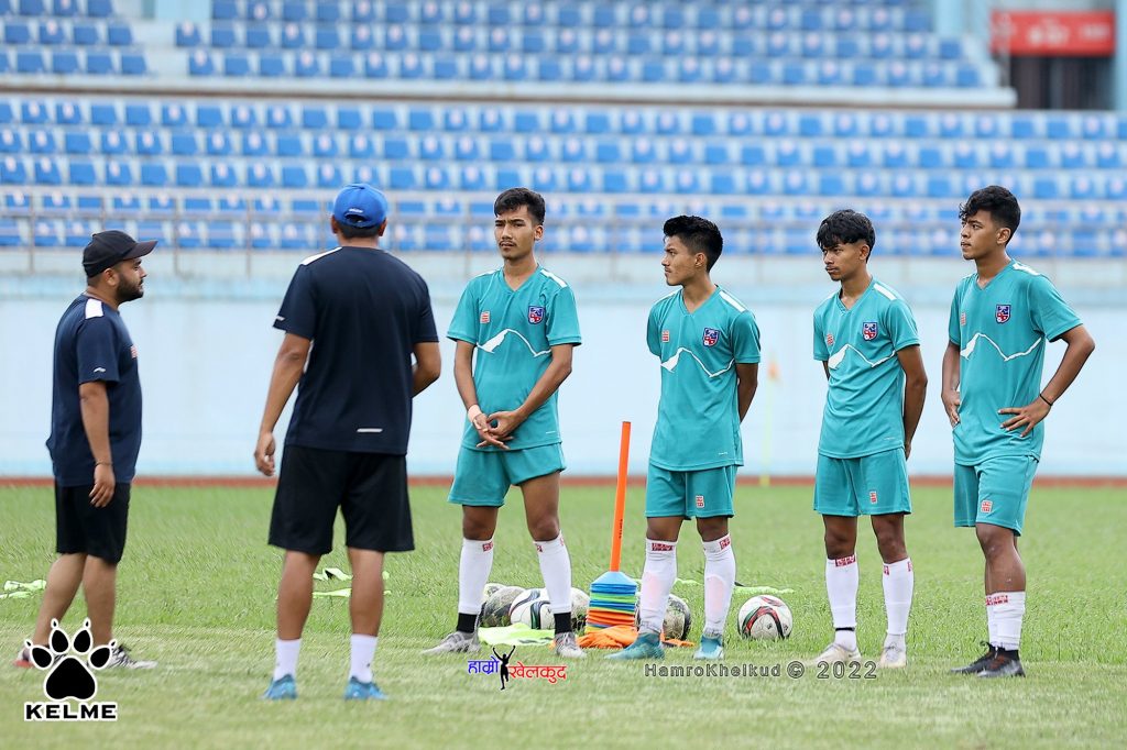 ‘अभ्यास राम्रो हुँदैछ । अहिलेसम्मको अवस्थामा हामी खुसी नै हुनुपर्ने प्रकारले तयारी गरिरहेका छौं । आफ्नो तर्फबाट खेलाडी र हामी आबद्ध सबैले सक्दो मेहेनत गर्दैछौं,’ प्रशिक्षणबारे केसीले बताए । केसीलाई सहायक प्रशिक्षक बालगोपाल साहुखल र गोलरक्षक प्रशिक्षक उज्ज्वल मानन्धरले साथ दिइरहेका छन् । टोलीको व्यवस्थापकमा दिवाकर घले रहँदा फिजियोथेरापिस्टको जिम्मेवारी लोकेन्द्र कुँवरले पाएका छन् ।