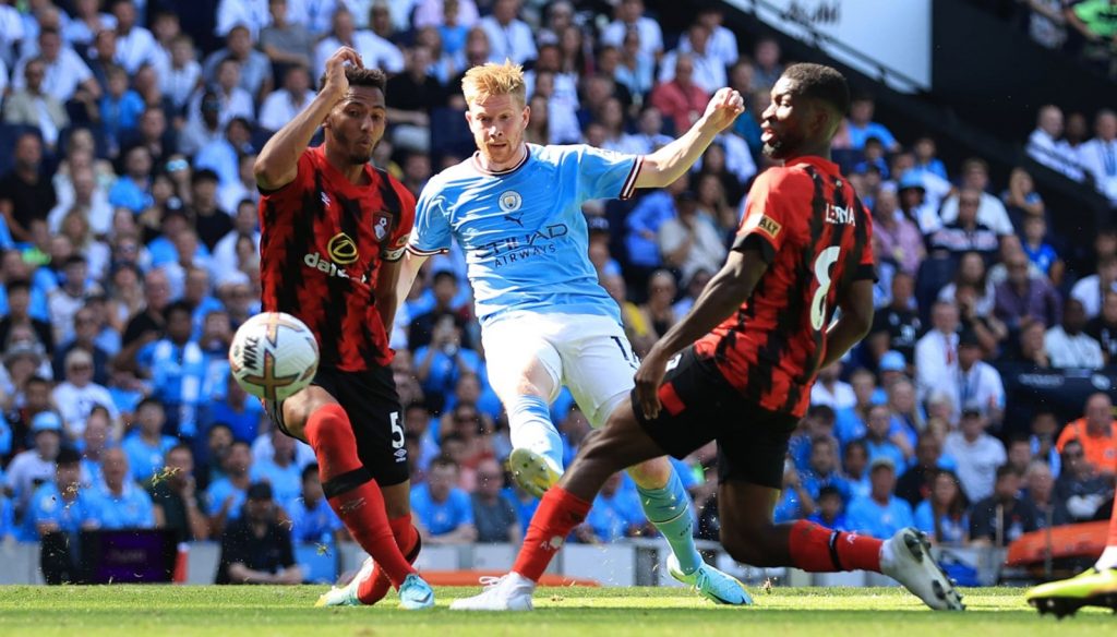 खेलको १९ औं मिनेटमा गुन्डोगनले गोल गर्दै सिटीलाई सुरुवाती अग्रता दिलाए । उनले एर्लिङ हालान्डसँग वन टु पासको मुभपछि पेनाल्टी क्षेत्र भित्रबाट गोल गरेका थिए । ३१ औं मिनेटमा डे ब्रुएनले अग्रता दोब्बर परे । उनले बर्नमाउथको हाफको मध्य भागबाट बल अघि बढाउँदै पेनाल्टी क्षेत्र भित्रबाट आउटसाइड फुटले सुन्दर फिनिस गरे ।