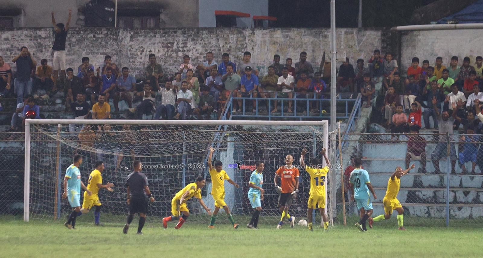 विहीबार सहिद रंगशालामा भएको पहिलो सेमिफाइनलमा सिद्राहाले आयोजकलाई ३-२ ले पराजित गरेको हो । पहिलो हाफमै २-० ले अघि बढेको सिद्राहाले खेलको अन्त्यतिर लय गुमाएपनि उपाधि भिडन्तमा स्थान पक्का गर्यो । विजयी टोलीका लागि हर्कराम गुरुङले २ तथा सुरज खत्रीले १ गोल गरे । आयोजकका कृष्ण शाक्यले दुई गोल गरेपनि टोलीलाई जिताउन सकेनन् ।