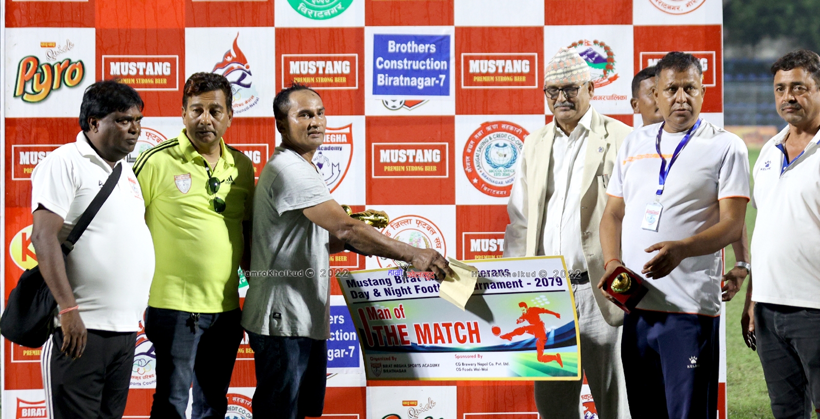 विराटनगर (हाम्रो खेलकुद) – आयोजक विराट मेघा स्पोर्ट्स एकेडेमी ‘बी’ लाई पराजित गर्दै सिद्राहा भेट्रान्स मुस्ताङ विराट मेघा भेट्रान्स फुटबल प्रतियोगिताको फाइनलमा प्रवेश गरेको छ ।