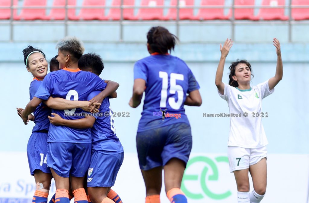 खेलको २० औं मिनेटमा भारतले अग्रता लियो । भारतकी सन्ध्या रंगनाथनले बायाँ विंगबाट गरेको क्रस गोलरक्षक सहिदा महापाराले बचाएकी थिइन् । तर रिबाउन्डमा आएको बल कप्तान मारिया खानलाई लाग्दै आफ्नै पोस्टमा छिरेको थियो ।