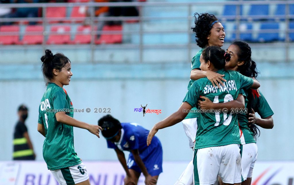 काठमाडौं (हाम्रो खेलकुद) – छैटौं महिला साफ च्याम्पियनसिप २०२२ अन्तर्गत समूह ए को दोस्रो खेलमा बंगलादेशले माल्दिभ्सलाई हराएको छ । पहिलो हाफको ३ गोलको मदतले बंगलादेश ३-० ले विजयी भएको हो ।