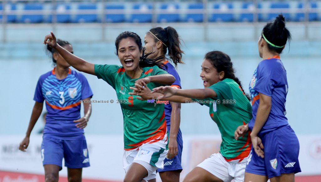 खेलको ११ औं मिनेटमा बंगलादेशले अग्रता लियो । सोप्नाले गोल गर्दै बंगलादेशलाई अघि बढाएकी थिइन् । उनले कृष्णारानी सरकारको प्रहारलाई दुई डिफेन्सको चुनौती पार गर्दै पेनाल्टी क्षेत्र भित्रबाट फिनिस गरिन् ।