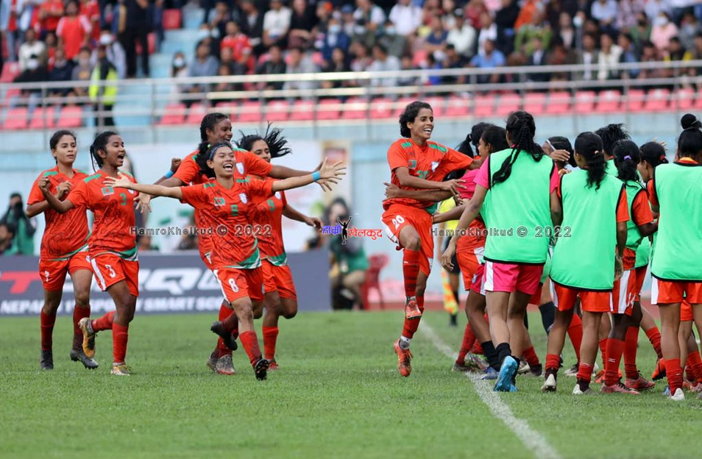 दशरथ रंगशालामा सोमबार घरेलु टोलीलाई स्तब्ध पार्न बंगलादेशकी कृष्णारानी सरकारले २ गोल गरिन । सम्सुनाहारले सुरुवाती अग्रता दिलाउँदा नेपालका लागि अनिता बस्नेतको गोल सान्तवना सावित भयो । पहिलो हाफमा २-० ले अग्रता लिएको बंगलादेशविरुद्ध नेपालले एक गोल फर्काएपनि गोलरक्षकको कमजोरीको फाइदा उठाउँदै बंगलादेशले पुन: २ गोलको अग्रता लियो । थप समयमा गोल हुन नसक्दा बंगलादेशले पहिलो पटक नेपाललाई हराउँदै उपाधि जितेको हो ।