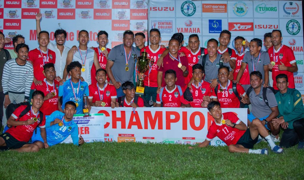 नारायणगढको क्याम्पा चौरमा सोमबार सम्पन्न फाइनलमा अर्को विभागीय टोली सशस्त्र प्रहरी बल (एपिएफ) एफसीलाई २-० ले पराजित गर्दै आर्मीले उपाधि जितेको हो । आर्मीको जितमा सुदील राई नायक बने । दुबै गोल उनले नै गरे ।