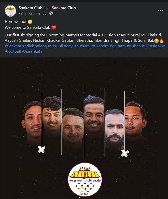 संकटाले आफ्नो सामाजिक संजालमार्फत खेलाडी अनुबन्धन गरेको सार्वजनिक गरेको छ । आयुष र सुनिलसँगै डिफेन्डरद्वय गौतम श्रेष्ठ र निशान खड्का, मिडफिल्ड र सुरज जिउ ठकुरी र गोलरक्षक टिकेन्द्र थापा संकटामा अनुबन्ध भएका हुन् । संकटाले यसै साता सुरु हुने आहा! रारा गोल्डकपमा सहभागिता जनाउँदैछ ।