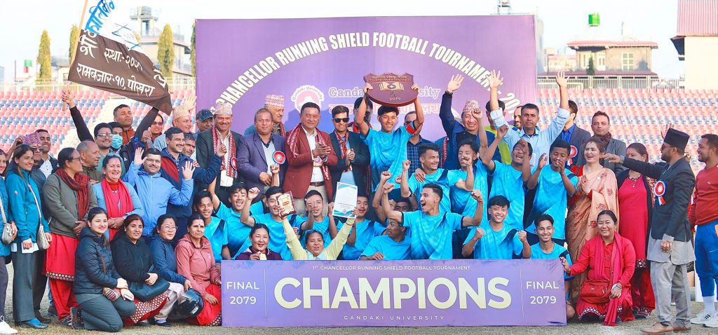 पोखरा (हाम्रो खेलकुद) – गण्डकी विश्व विद्यालयले आयोजना गरेको प्रथम कुलपति रनिङ सिल्ड फुटबल प्रतियोगिताको उपाधिका लागि कालिका माध्यमिक विद्यालयले जितेको छ ।