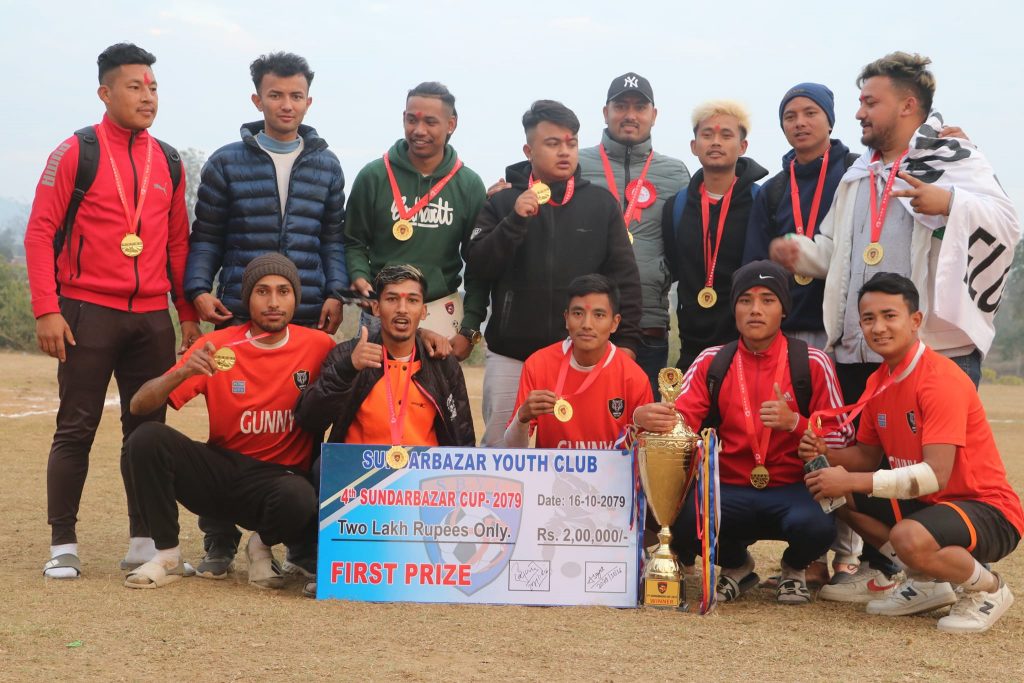 लमजुङ (हाम्रो खेलकुद) – गन्नी एफसी पोखराले चौथो सुन्दर बजार कप सेभेन ‘ए’ साइड फुटबल प्रतियोगिताको उपाधि जितेको छ ।