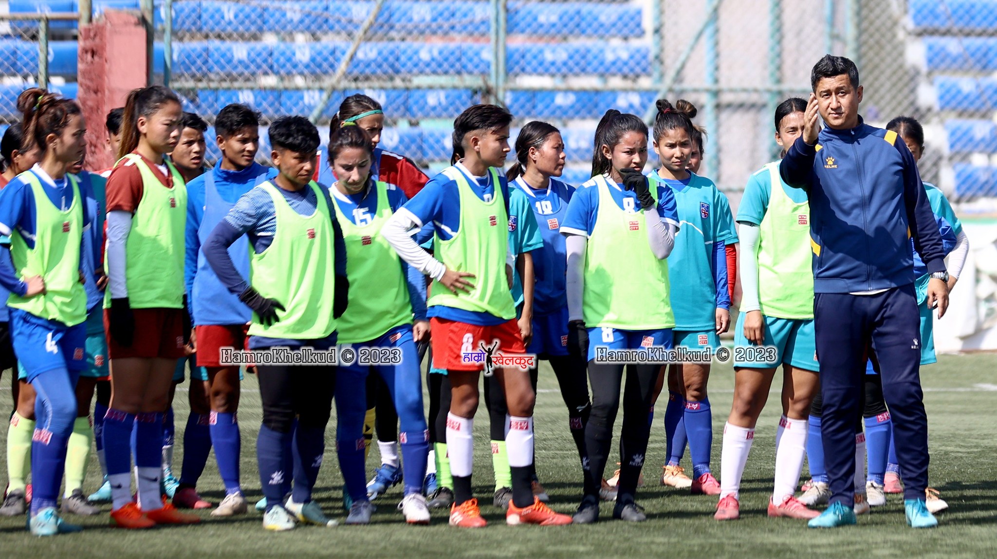 मैत्रीपूर्ण खेलको तयारीका लागि राष्ट्रिय टोलीले सातदोबाटोस्थित एन्फा कम्प्लेक्समा प्रशिक्षण गरिरहेको छ । टोलीको मुख्य प्रशिक्षकमा अनन्त राज थापा, सहायक प्रशिक्षकमा गंगा गुरुङ, गोलकिपिङ प्रशिक्षकमा सुरज कुमार लामा र व्यवस्थापकमा ब्रिन्दा देवान छिन् ।
