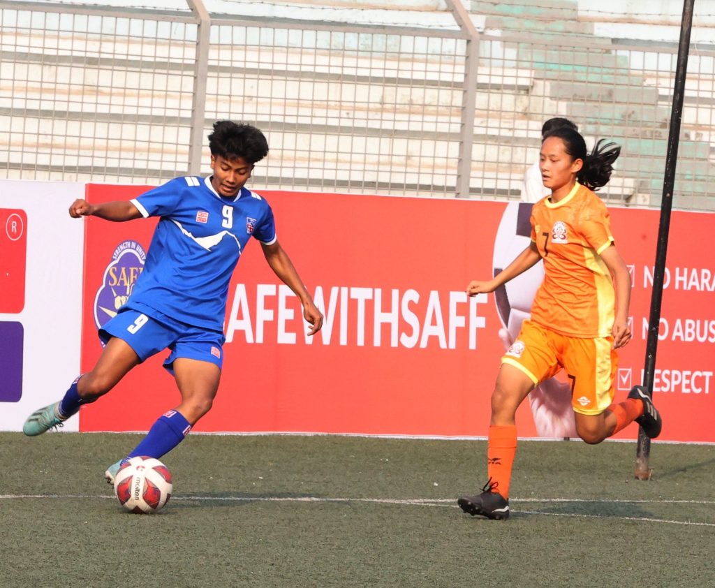 नेपालका लागि अमिशा कार्की ह्याट्रिक र कप्तान प्रिती राई गोल गरेकी थिइन् । अमिशाको गोलबाट नेपालले १९ औं मिनेटमा अग्रता लिएको थियो । पहिलो हाफको इन्जुरी समयमा अमिशाले दोस्रो गोल गरिन् । प्रितीले ६१ औं मिनेटमा गोल गरिन् भने अमिशाले त्यसको एक मिनेटपछि अर्को गोल गर्दै ह्याट्रिक पूरा गरिन् ।