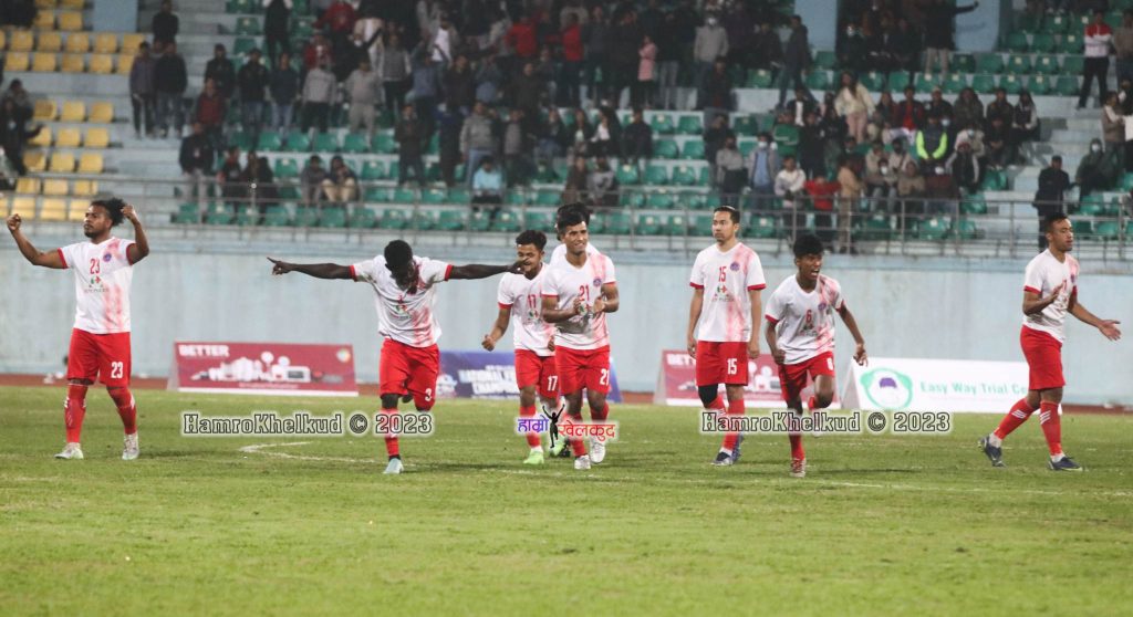 पेनाल्टीमा मछिन्द्रका लागि रन्जित धिमाल, दिवाकर चौधरी, कप्तान सुजल श्रेष्ठ, पुजन उपरकोटी र ओमोलाजा करिमले गोल गरे । सातदोबाटोका लागि निरज चौधरी, दीपनेराज सिंह र एकराज बुढाथोकीले गोल गरे । त्यसअघि निर्धारित पाँचौं मिनेटमा ओलावाले अफिजको गोलमा मछिन्द्रले खेलमा अग्रता लिएको थियो । १८ औं मिनेटमा गोल गर्दै सातदोबाटो खेलमा फर्केको थियो ।