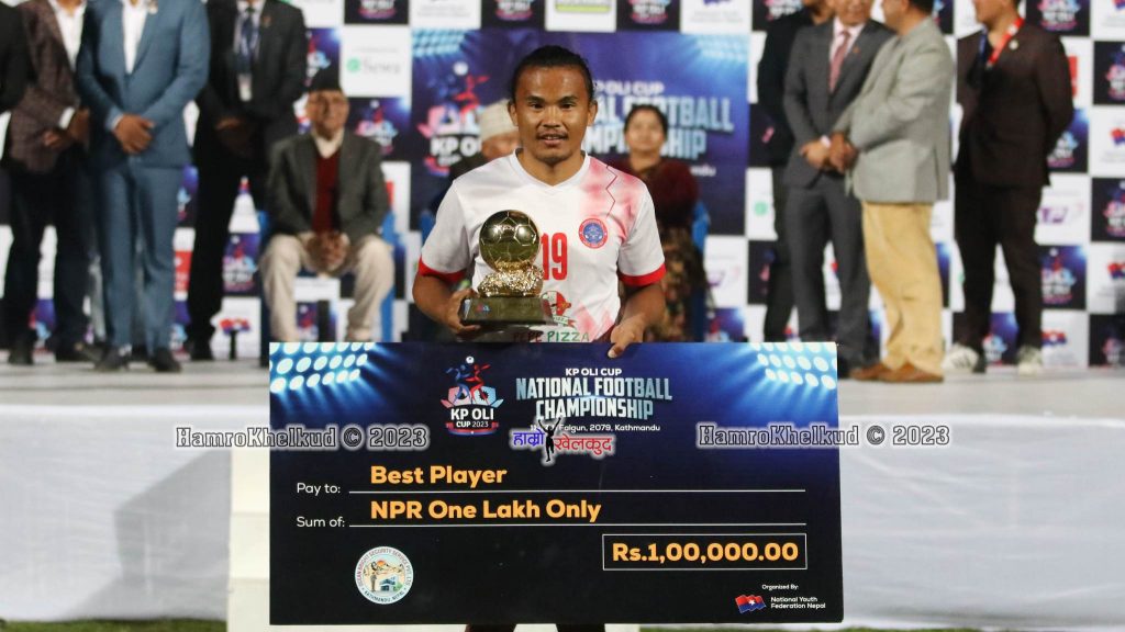 काठमाडौं (हाम्रो खेलकुद)– मछिन्द्र एफसीका रक्षक देवेन्द्र तामाङ केपी ओली कप फुटबल प्रतियोगिताको सर्वोत्कृष्ट खेलाडी घोषित भएका छन् ।