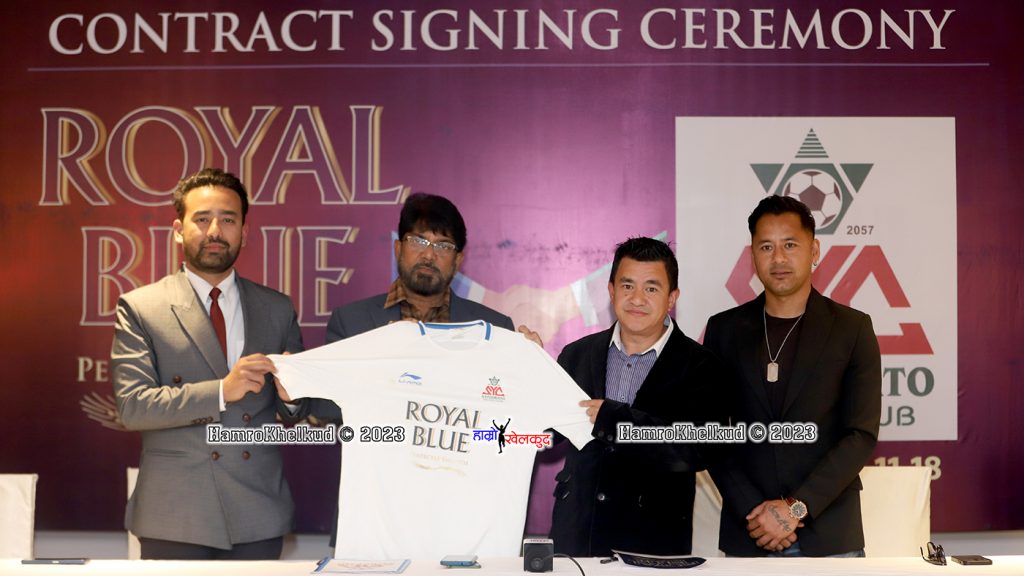 क्लबका अध्यक्ष कपिल राना मगर र सागर डिस्टिलरी हेड अफ ब्राण्ड रितिक शाहीले सम्झौता पत्रमा हस्ताक्षर गरेका थिए । सम्झौता एक वर्षको रहने बताइएको छ । सातदोबाटोले अब रोयल ब्लु सातदोबाटो युथ क्लबका नाममा लिगमा प्रतिस्पर्धा गर्नेछ । लिग शुक्रबार सुरु हुँदैछ ।