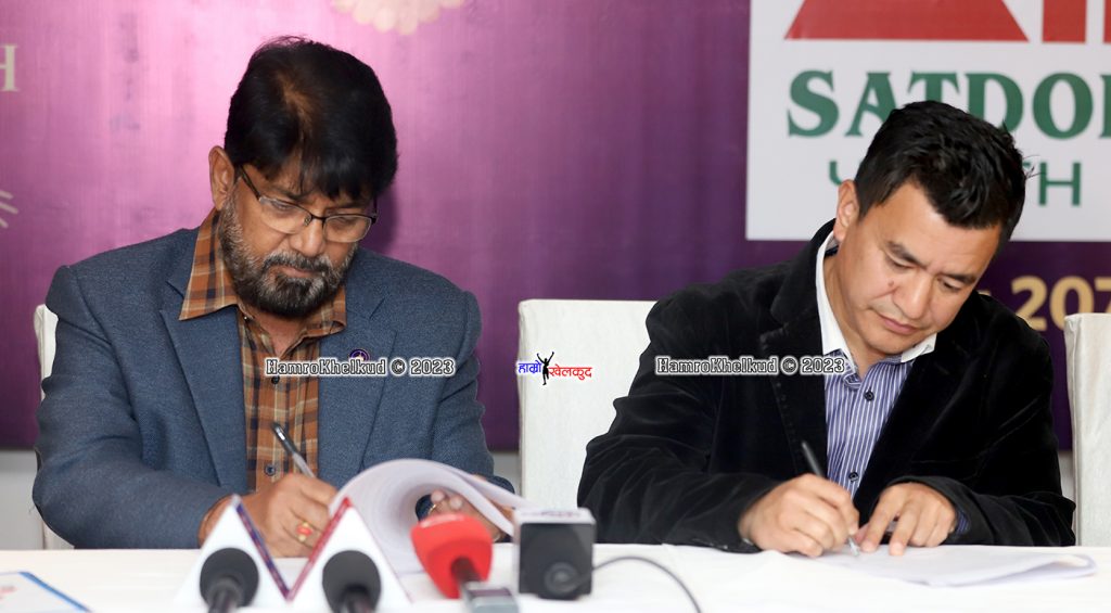 काठमाडौं (हाम्रो खेलकुद)– सहिद स्मारक ए डिभिजन लिग सुरु हुनु अघिल्लो दिन सातदोबाटो युथ क्लबले मुख्य प्रायोजकसँग सम्झौता गरेको छ । सातदोबाटोले बिहीबार रोयल ब्लुको उत्पादक कम्पनी सागर डिस्टिलरीसँग सम्झौता गरेको हो ।