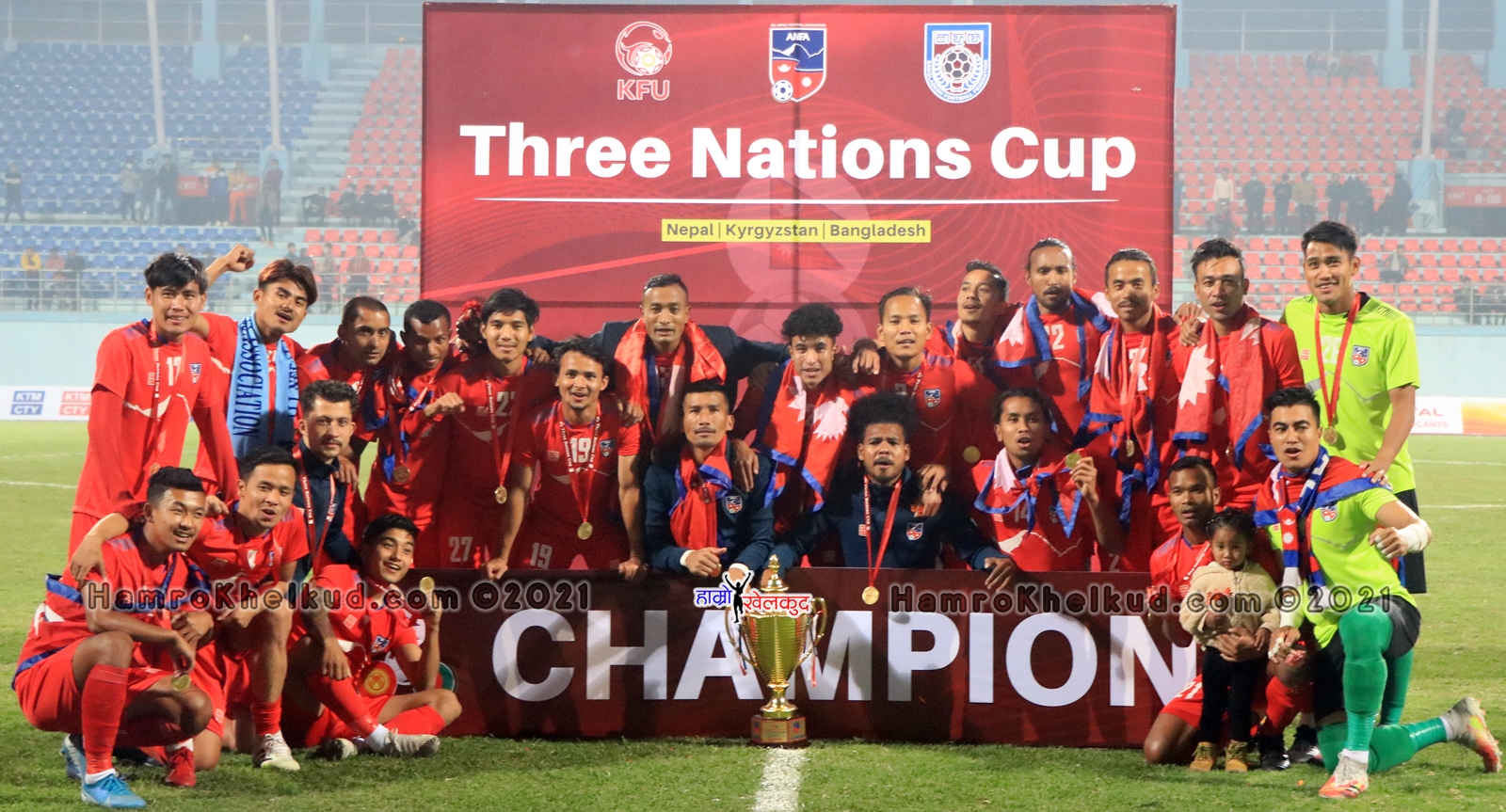 एन्फाले सोमबार पत्रकार सम्मेलन गर्दै थ्री नेसन्स कप चैत ८ देखि १७ गतेसम हुने जनाएको छ । त्रिपुरेश्वरस्थित दशरथ रंगशालामा आयोजना हुने थ्री नेसन्स कपमा नेपालसहित भुटान र लाओसको सहभागिता रहने एन्फाले जनाएको छ ।
