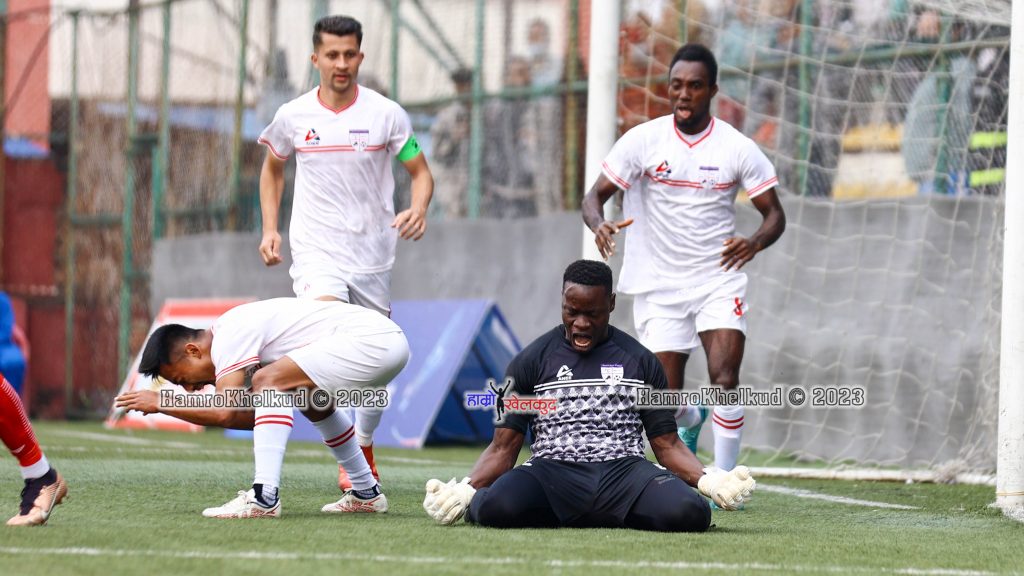 इन्ज्युरी समयमा संकटाले पेनाल्टीको अवसर पायो । कमल श्रेष्ठले क्रस रोक्ने क्रममा हात प्रयोग गरेको भन्दै रेफ्री प्रज्वल क्षेत्रीले पेनाल्टीको निर्णय दिए । मनिष डाँगीको पेनाल्टी गोलरक्षक प्रिसोले विफल पारे । लगत्तै रिबाउन्डमा गरेको प्रहार बाहिरिंदा खेल बराबरी भएको हो ।
