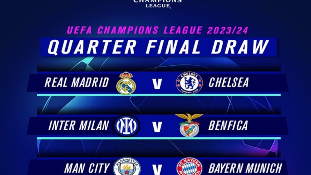 यस्तै अर्काे क्वाटरफाइनलमा इटालियन क्लब इन्टर मिलानले पोर्चुगिज क्लब बेन्फिका र सिरी ए च्याम्पियन एसी मिलानले अहिले शीर्षस्थानमा रहेको नेपोलीसँग खेल्नेछ ।