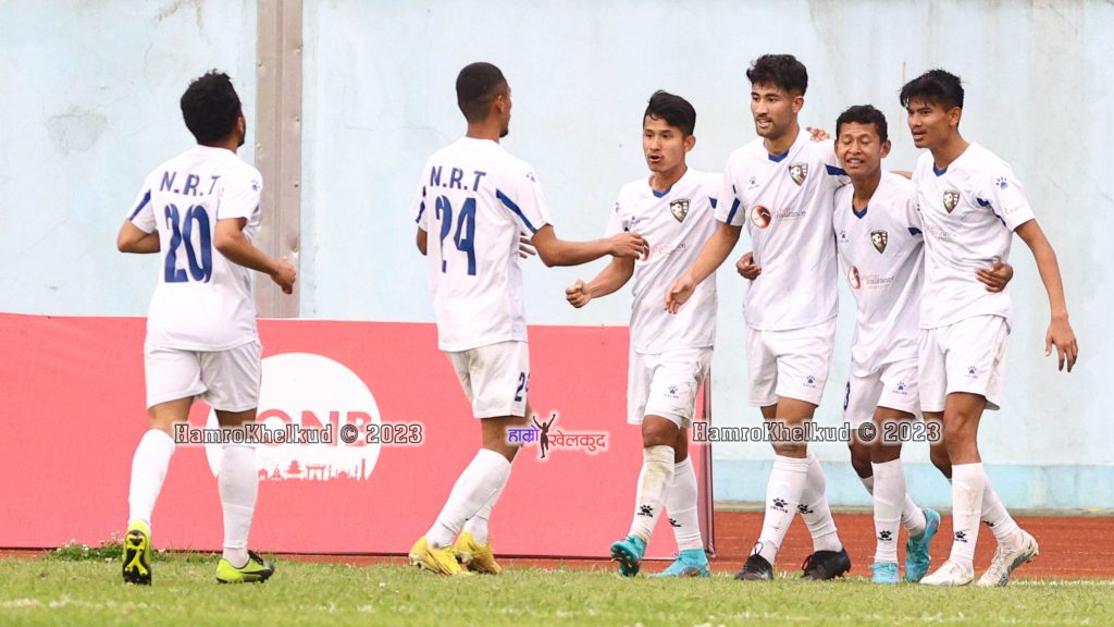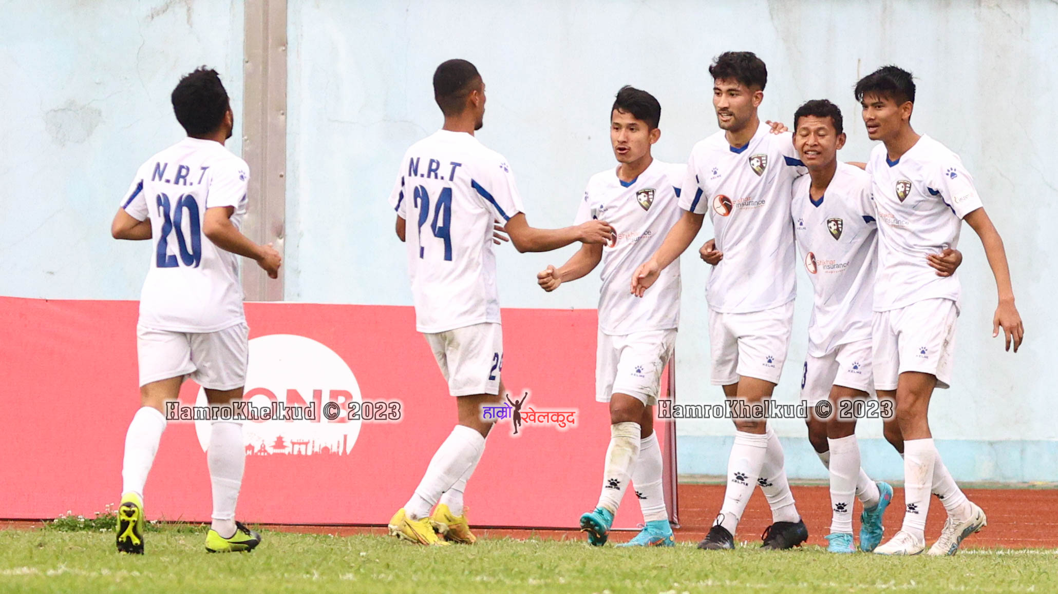 पहिलो हाफ गोलरहित बराबरीमा सकिएपछि दुवै टोलीले दोस्रो हाफमा १-१ गोल गरे । एनआरटीले खेलमा सुरुवाती अग्रता लिएपनि त्यसलाई जोगाउन नसक्दा पहिलो जितबाट बन्चित भयो । खेलको ६५ औं मिनेटमा एनआरटीका लागि संजिव विष्टले गोल गरेका थिए । पुलिसका गोलरक्षक संजित श्रेष्ठले पेनाल्टी क्षेत्र भित्र क्लियर गर्न खोजेको बलमा राम्रो नियन्त्रण हुन नसक्दा संजिवले खाली पोस्टमा सहजै गोल गरे ।