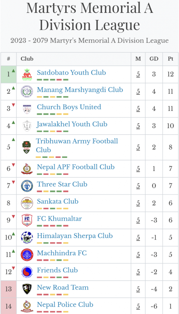 काठमाडौं (हाम्रो खेलकुद) – सहिद स्मारक ए डिभिजन लिग २०७९ अन्तर्गत मनाङ मर्स्याङ्दी क्लबले लगातार दोस्रो जित दर्ता गरेको छ । दशरथ रंगशालामा मनाङले नेपाल एपिएफ क्लबलाई २-१ ले पराजित गर्यो ।