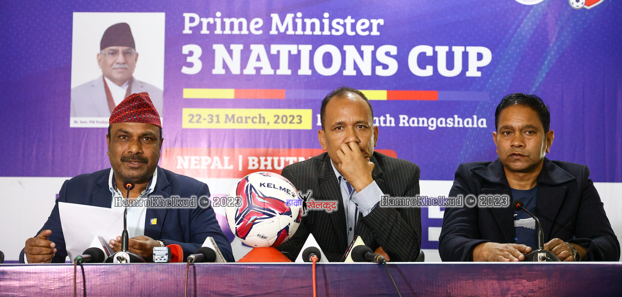काठमाडौं (हाम्रो खेलकुद) – अखिल नेपाल फुटबल संघ (एन्फा) ले चैत्र ८ देखि १७ सम्म नेपाल, भुटान र लावस सम्मिलित प्रधानमन्त्री थ्री नेसन्स कप फुटबल प्रतियोगिता आयोजना गर्दैछ ।