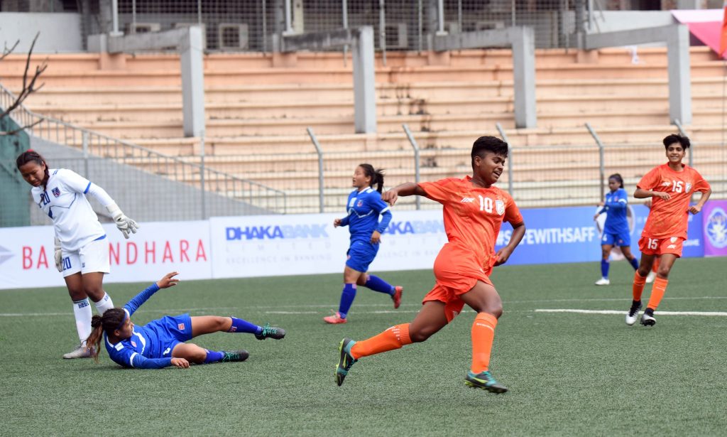 बंगलादेशको ढाकामा सोमबारदेखि शुरु भएको च्याम्पियनसिपमा नेपाल पहिलो खेलमा नै भारतसँग ४–१ ले पराजित भएको हो । बिएसएसएस मोस्ताफा कमल स्टेडियममा भारतको जितमा शिलजी शाहजीले ह्याट्रिक तथा पुजाले एक गोल गरिन् । नेपालकी वर्षा ओलीले एक गोल फर्काइन् ।