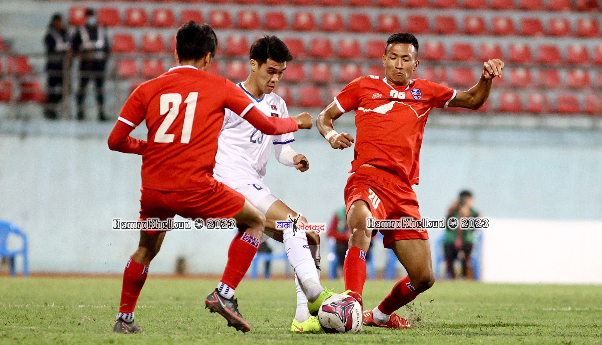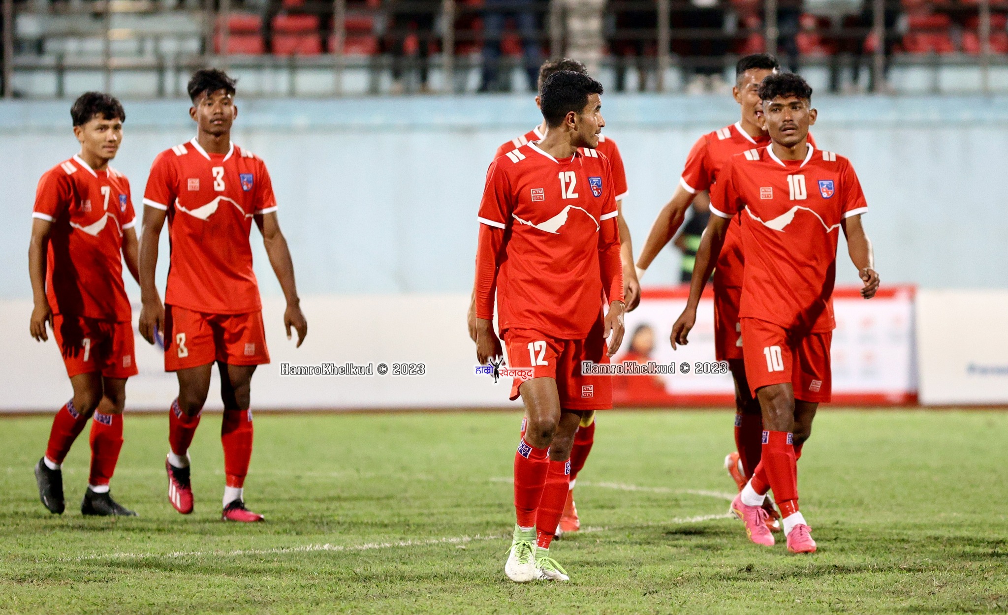 नेपालले खेलको सुरुवातमा केहि आक्रामक मुभ निर्माण गरेको थियो । मिडफिल्डबाट लेफ्ट विंगमा रहेका आयुषबाट पेनाल्टी क्षेत्रभित्र प्रवेश गर्ने नेपालको पटक पटकको प्रयास पेनाल्टी क्षेत्र भित्र भने पुग्न सकेन । राइट विंगमा भरत खवासले लगातार दबाब सिर्जना गरेपनि बलमा हुँदा भने खास प्रभाव जमाउन सकेनन् । त्यसैले पनि दोस्रो हाफमा प्रशिक्षक अनेसेले मनिष डाँगीलाई उनको स्थानमा खेलाए ।