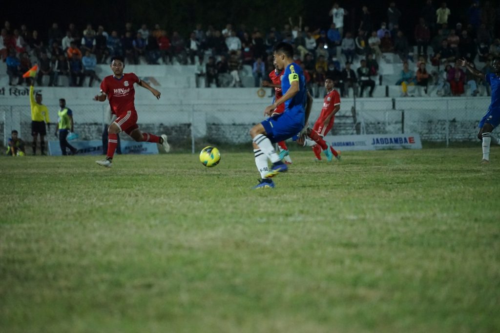 खेलको आठौं मिनटमा कृपा चौधरीको उत्कृष्ट प्रहार वागमतीका गोलरक्षकले विफल पारेका थिए । २६ औं मिनटमा विवेक चौधरीले वन भर्सेस वनको अवसर गुमाए । कृपाको क्रसमा विवेक सम्हालिन नसक्दा वागमतीका गोलरक्षक गच्छदारले उत्कृष्ट बचाउ गरे ।