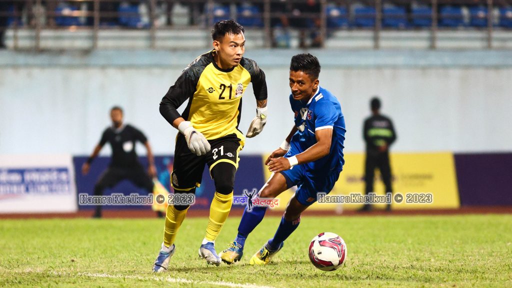 काठमाडौं (हाम्रो खेलकुद) – भुटानले घरेलु टोली नेपालविरुद्ध प्रधानमन्त्री थ्री नेसन्स कपको लिग चरणको अन्तिम खेलमा अग्रता लिएको छ । पहिलो हाफको खेलमा नेपाल १-० ले पछि परेको हो ।