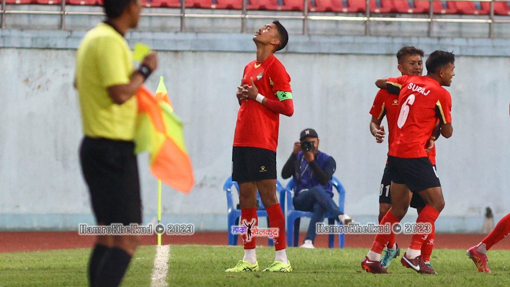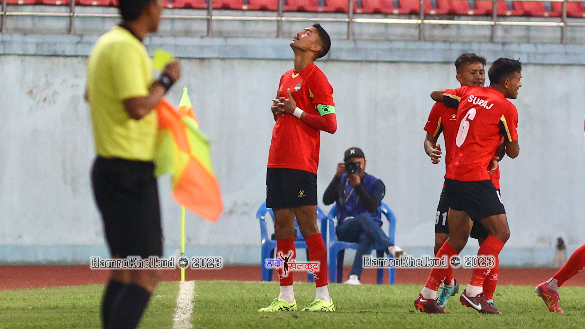 खेलको चौथो मिनेटमा जगजित श्रेष्ठको पासमा कप्तान जिलेस्पी जंग कार्कीले गोल गर्दै आर्मीलाई सुरुवाती अग्रता दिलाए । जगजितले दायाँ विंगबाट दिएको क्रसलाई जिलेस्पीले हेडरमार्फत गोल गरेका थिए ।