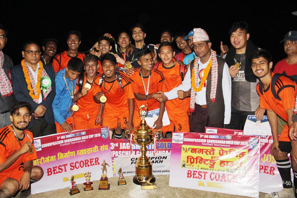 कैलाली (हाम्रो खेलकुद) – नवलपरासीको फोर ब्रदर्श एफसीले तेस्रो जग शक्ति गोल्ड टिएमटी तेस्रो सुदूरपश्चिम गौरीगंगा गोल्डकप फुटबल प्रतियोगिताको उपाधि जितेको छ ।