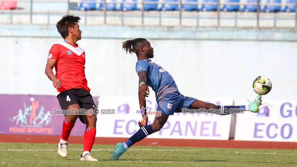 त्रिपुरेश्वरस्थित दशरथ रंगशालामा शनिबार भएको खेलको १३औं मिनेटमा मेसुके ओलोमोउले गोल गर्दै खुमलटारलाई १–० को अग्रता दिलाए ।