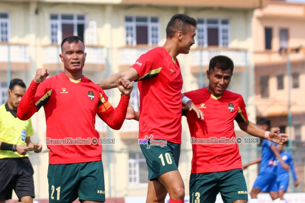 खेलको १८ औं मिनेटमा कप्तान भरत खवासले आर्मीलाई अग्रता दिलाएका थिए । जिलेस्पी जंग कार्कीको पासलाई उनले पेनाल्टी क्षेत्रभित्र लग्दै गोल गरेका थिए । तर दोस्रो हाफको इन्ज्युरी समयमा गोल खाएपछि आर्मी जितबाट बन्चित भयो ।