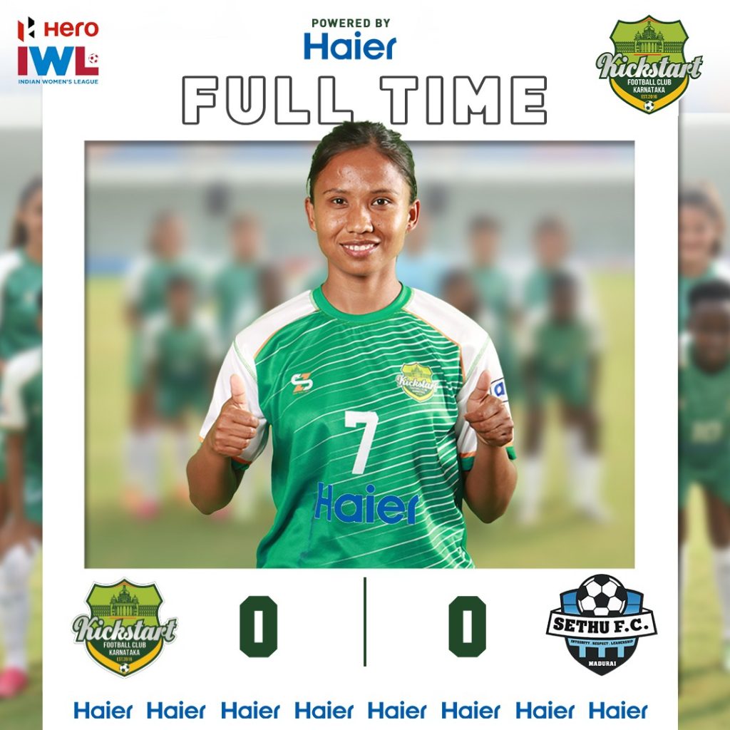 राष्ट्रिय टोलीकी कप्तान तथा गोलकिपर एन्जिला तुम्बापो सुब्बा आबद्ध सेथु र राष्ट्रिय टोलीका मिडफिल्डरद्वय सरु लिम्बु र रेनुका नगरकोटे आबद्ध किकस्टार्ट एफसी कर्नाटकबीचको खेल गोलरहित बराबरीमा सकिएको थियो । पहिलो रोजाईमा खेलका एन्जिला र सुरुले पूरा समय खेलेका थिए । रेनुका भने ८१ औं मिनेटमा कोइको एलिजावेथ काटुङवाको ठाँउमा मैदान प्रवेश गरेकी थिइन् ।