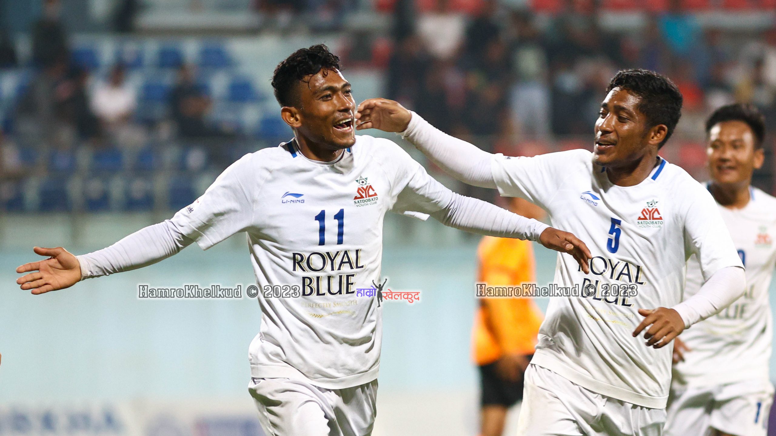 १३ औं मिनेटमा सातदोबाटोले विलियम ओपोकुको सुन्दर गोलमा अग्रता लियो । दायाँ विंगबाट दिपक राज सिंह ठकुरीले दिएको क्रसलाई विलियमले भलीमार्फत गोल गरेका थिए । ३६ औं मिनेटमा दिपकले सातदोबाटोको अग्रता दोब्बर पारे । विलियमले मिडफिल्डमा फ्लिक गरेको बललाई नियन्त्रणमा लिँदै दिपकले पेनाल्टी क्षेत्र बाहिरबाट गोल गरे ।