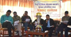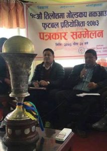 बुटवल – रुपन्देही जिल्ला फुटबल संघको आयोजनामा मोफसलको प्रतिष्ठित र पुरानो फुटबल प्रतियोगिता तिलोत्तमा गोल्डकप फुटबल प्रतियोगिता १९ औ संस्करण फागुनमा हुने भएको छ । फागुन १२ गते देखि २१ गतेसम्म एन्फा टेक्निकल सेन्टर देबिनगर बुटवलमा हुने प्रतियोगितामा १० टोलीको सहभागिता रहने जिल्ला फुटबल सघ रुपन्देहिका अध्यक्ष दिर्घ बहादुर केसी (कुमार) ले सोमबार आयोजित पत्रकार सम्मेलनमा जानकारी दिए ।