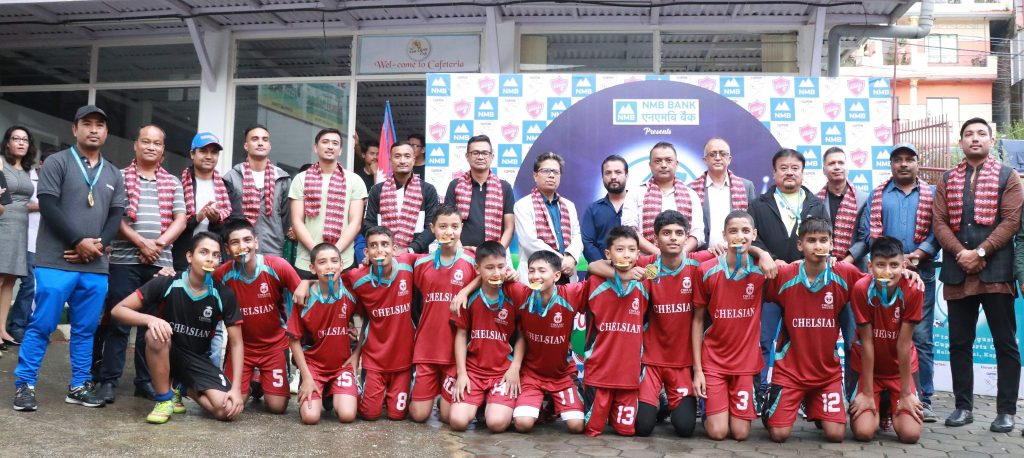 काठमाडौं (हाम्रो खेलकुद)– चेल्सी इन्टरसेनल स्कुल एनएमबी-कपअन अन्तर स्कुल यू १४ फुटबल प्रतियोगिताको उपाधि जितेको छ ।